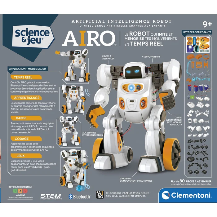 Un robot innovant à assembler, doté d’une intelligence artificielle qui lui permet de reconnaître les gestes et les commandes vocales. Personnalise ton robot en l’entraînant à reconnaître tous les gestes que tu souhaites et amuse-toi avec lui à travers de nombreuses activités amusantes. 6 moteurs lui permettent d’effectuer tout type de mouvement : se déplacer […]