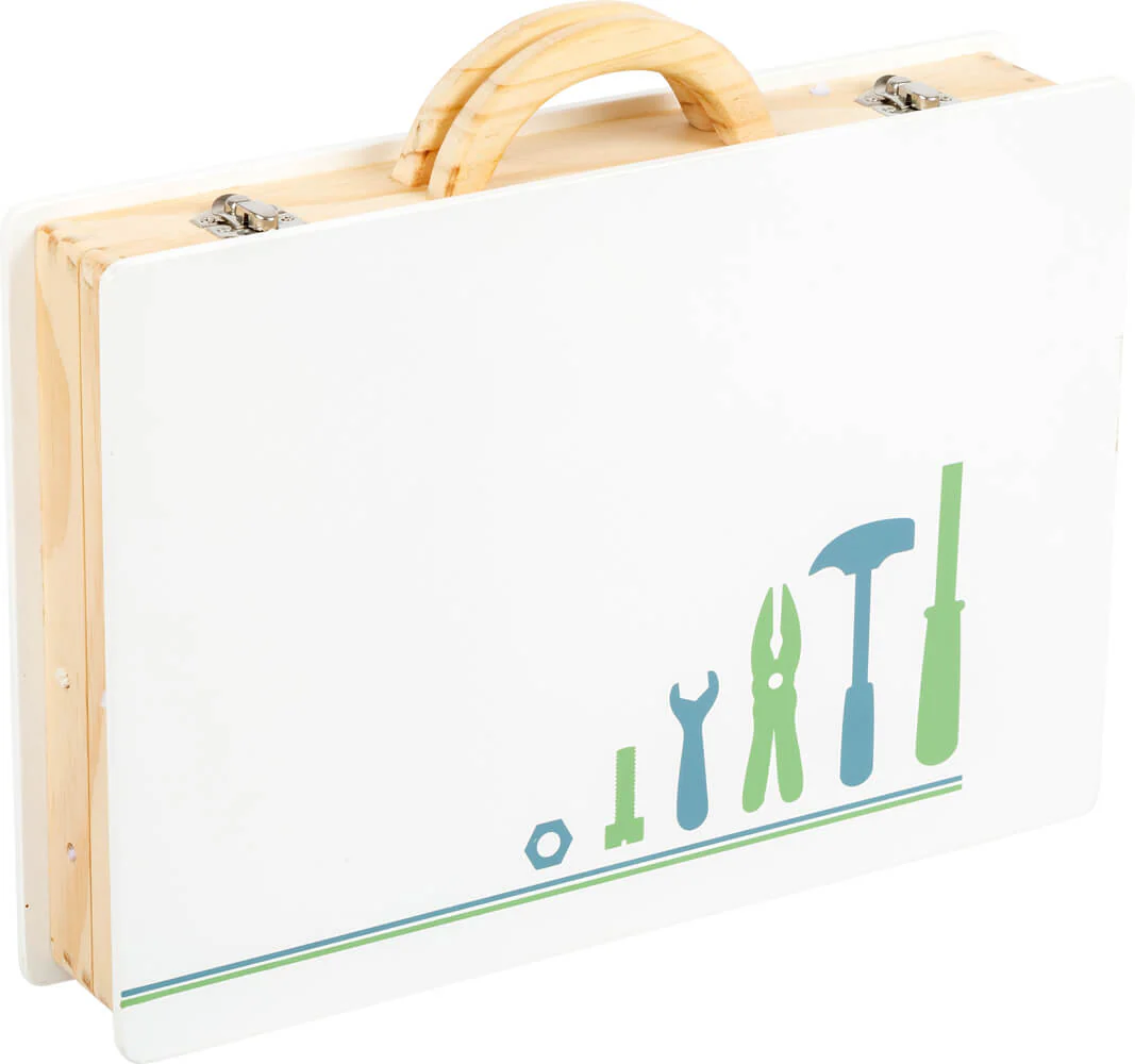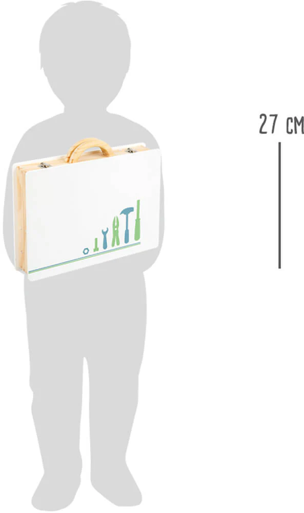Et c´est parti pour le bricolage ! Avec cette mallette en bois au design scandinave, les petits bricoleurs deviennent de véritables professionnels. Des accessoires détaillés, tels qu´une règle avec niveau à bulle intégré et un tournevis électrique, qui peut changer ses embouts à l´aide d´aimants, ne laissent rien à désirer ! Accessoires inclus. 43 accessoires inclus, comprenant 5 outils, 1 perceur, 3 bits, 11 vis, 11 écrous et 12 rails perforés. Les fermetures à clip permettent de ranger tout en toute sécurité et les poignées de transport en bois préparent la boîte à outils pour les garçons et les filles à la prochaine mission de bricolage.