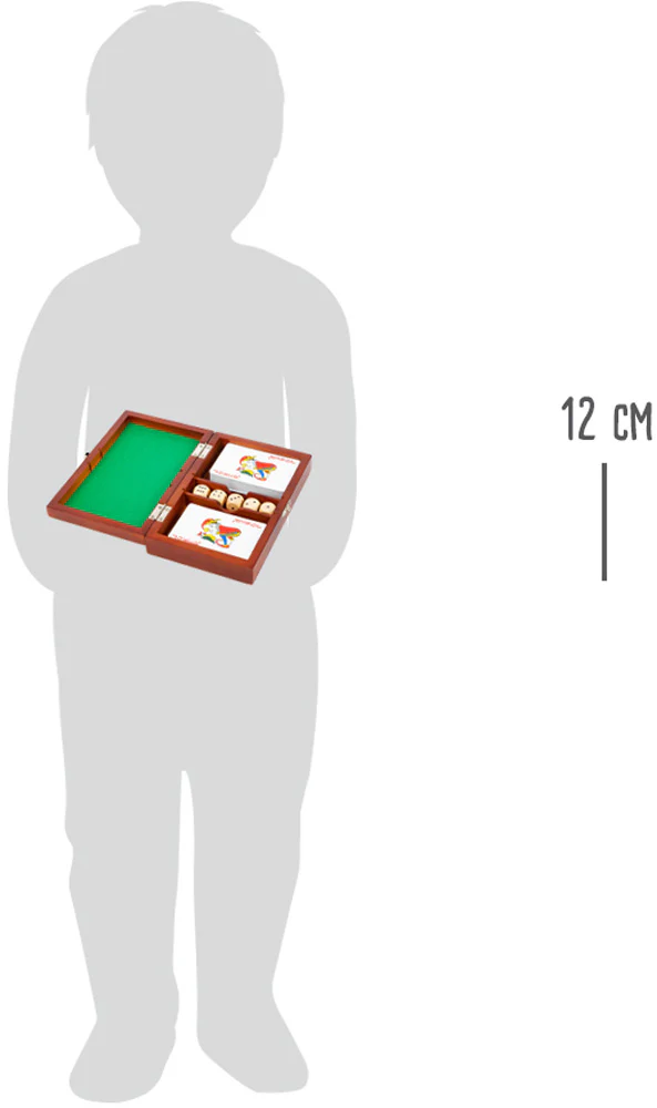Cet ensemble comprend deux jeux de cartes et cinq dés. Les deux jeux de 54 cartes peuvent être utilisés pour jouer à des jeux classiques tels que le skat ou autres. Le couvercle de la boîte est doublé de tissu vert et convient parfaitement comme surface de jeu. Grâce à une fermeture, la boîte de jeu peut être fermée en toute sécurité et est donc idéale pour les déplacements. Une boîte pratique dans un design de haute qualité qui offre le bon jeu pour chaque joueur.