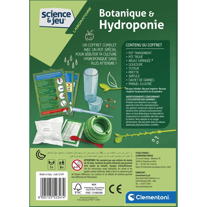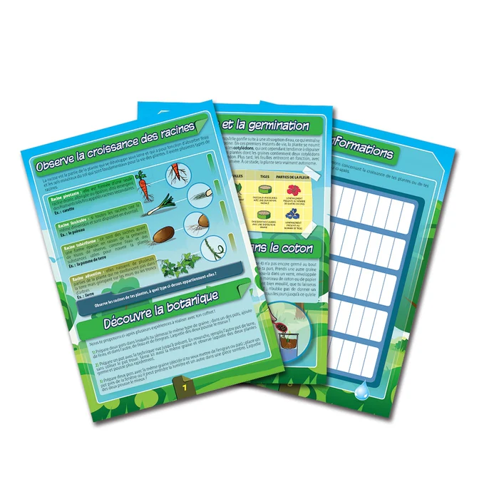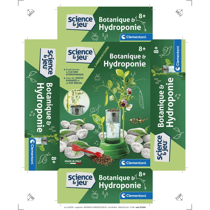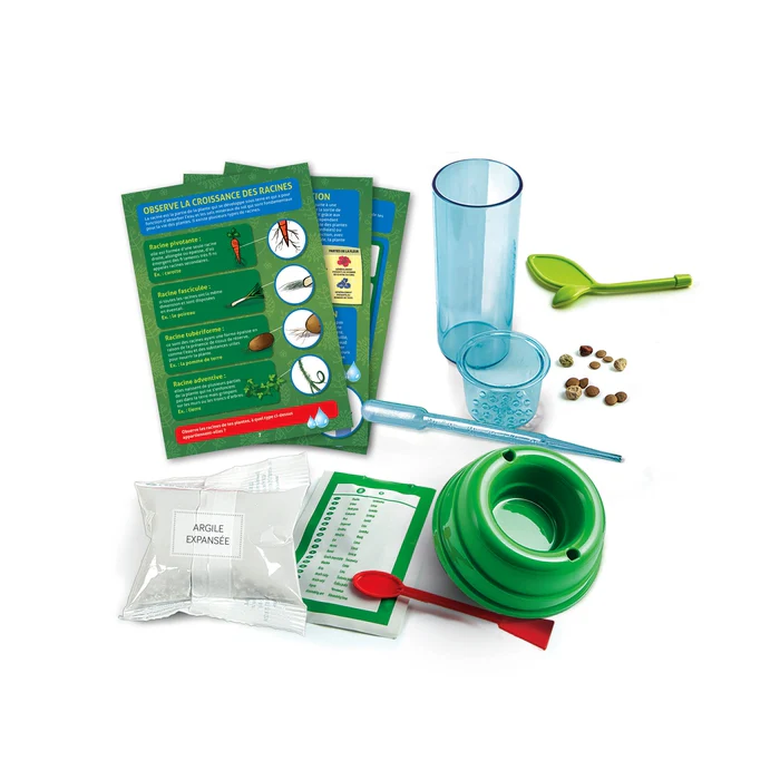 Un coffret innovant pour expérimenter les techniques de la culture hydroponique. Avec le récipient en plastique, tu peux cultiver des plantes sans utiliser de terre. Ce coffret contient tout le matériel pour commencer l’expérience ! Le manuel illustré guide l’enfant vers l’exploration de nouvelles méthodes de culture des plantes.