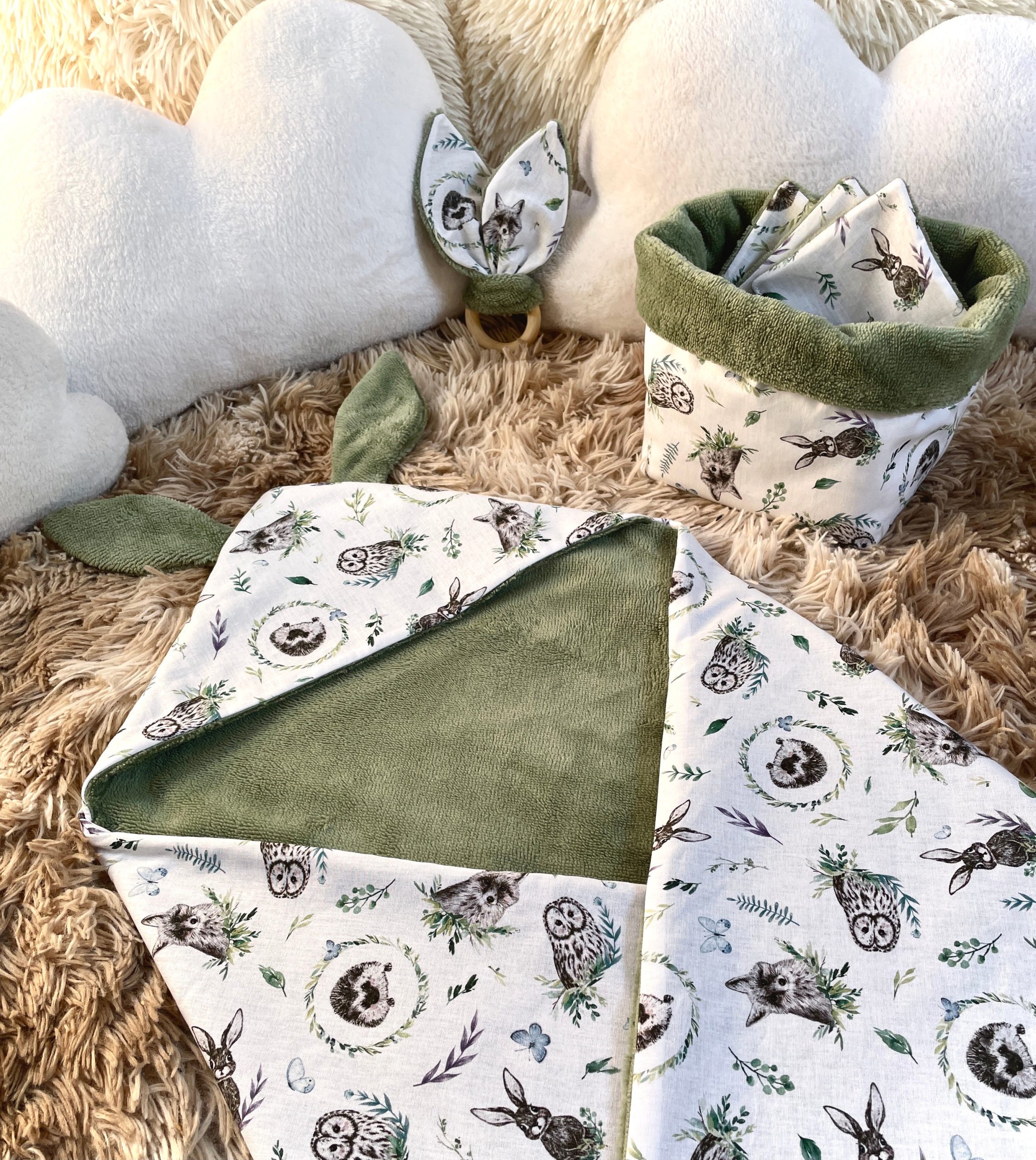 Si vous le souhaitez, je peux personnaliser la cape de bain en brodant le prénom de votre Petit Loup dans une couleur assortie directement sur la capuche.