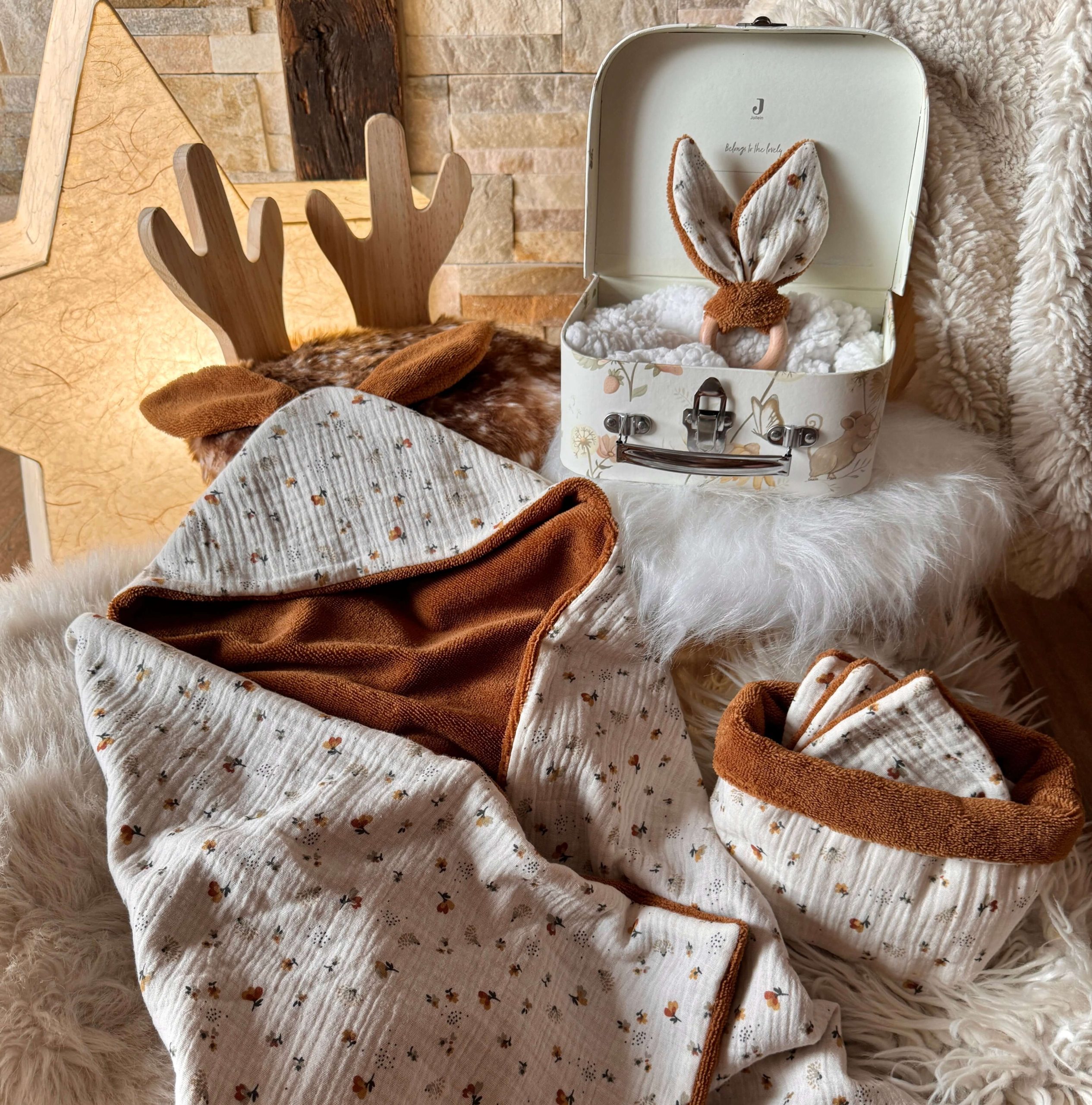 Cape de bain Lapinou / Double Gaze Nelsi Fauve