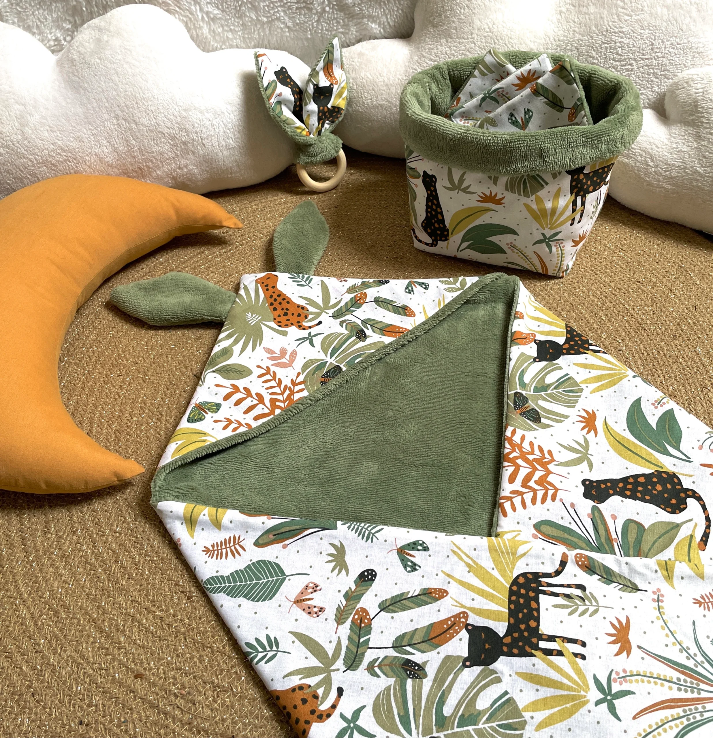 -La Cape de bain « Petit Bout’Chou » d’environ 75x75cm qui accompagnera bébé de la naissance jusqu’à ses 18-24 mois.