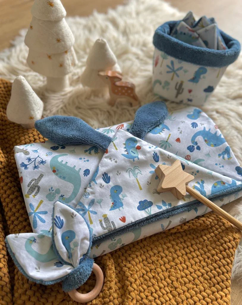 -La Cape de bain « Petit Bout’Chou » d’environ 75x75cm qui accompagnera bébé de la naissance jusqu’à ses 18-24 mois.