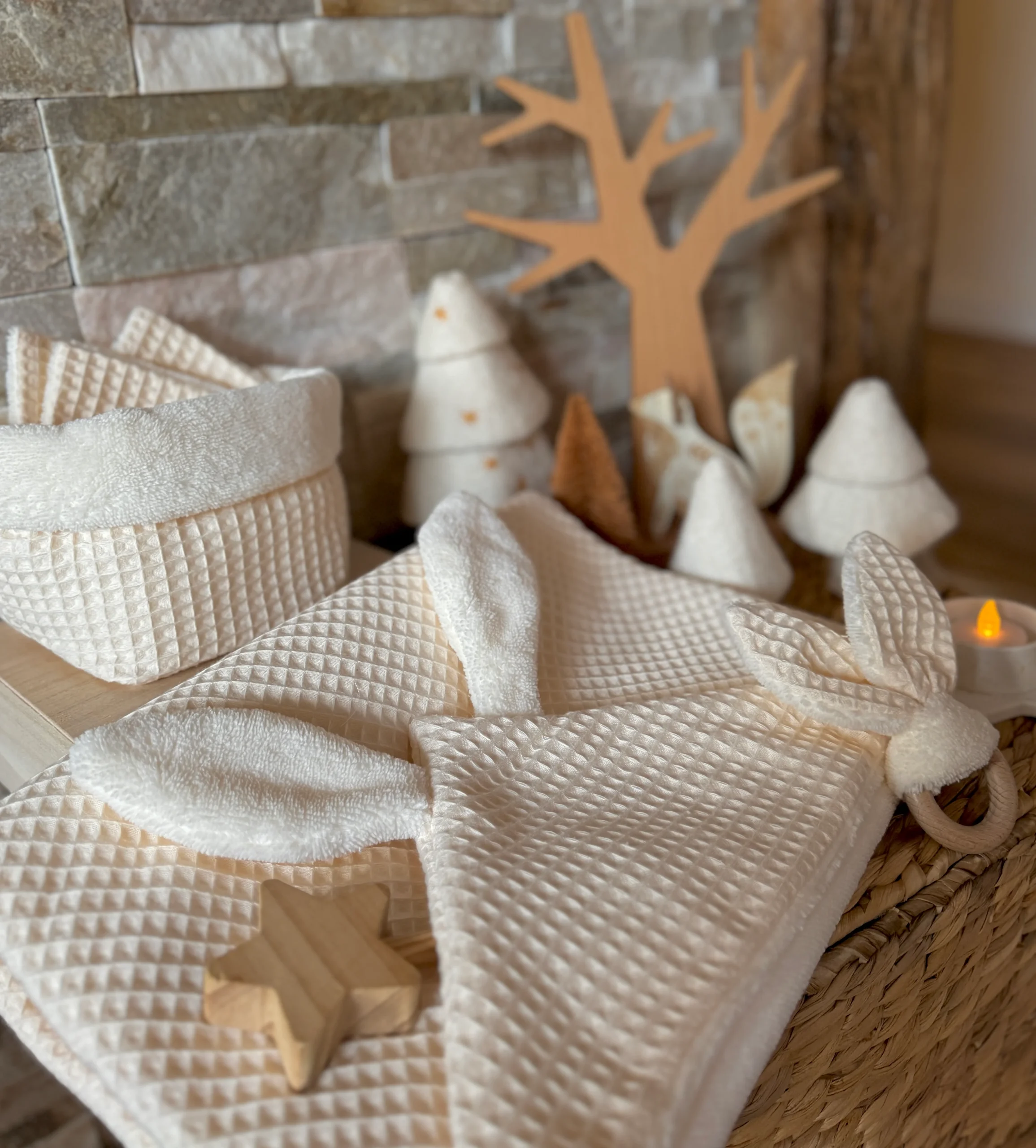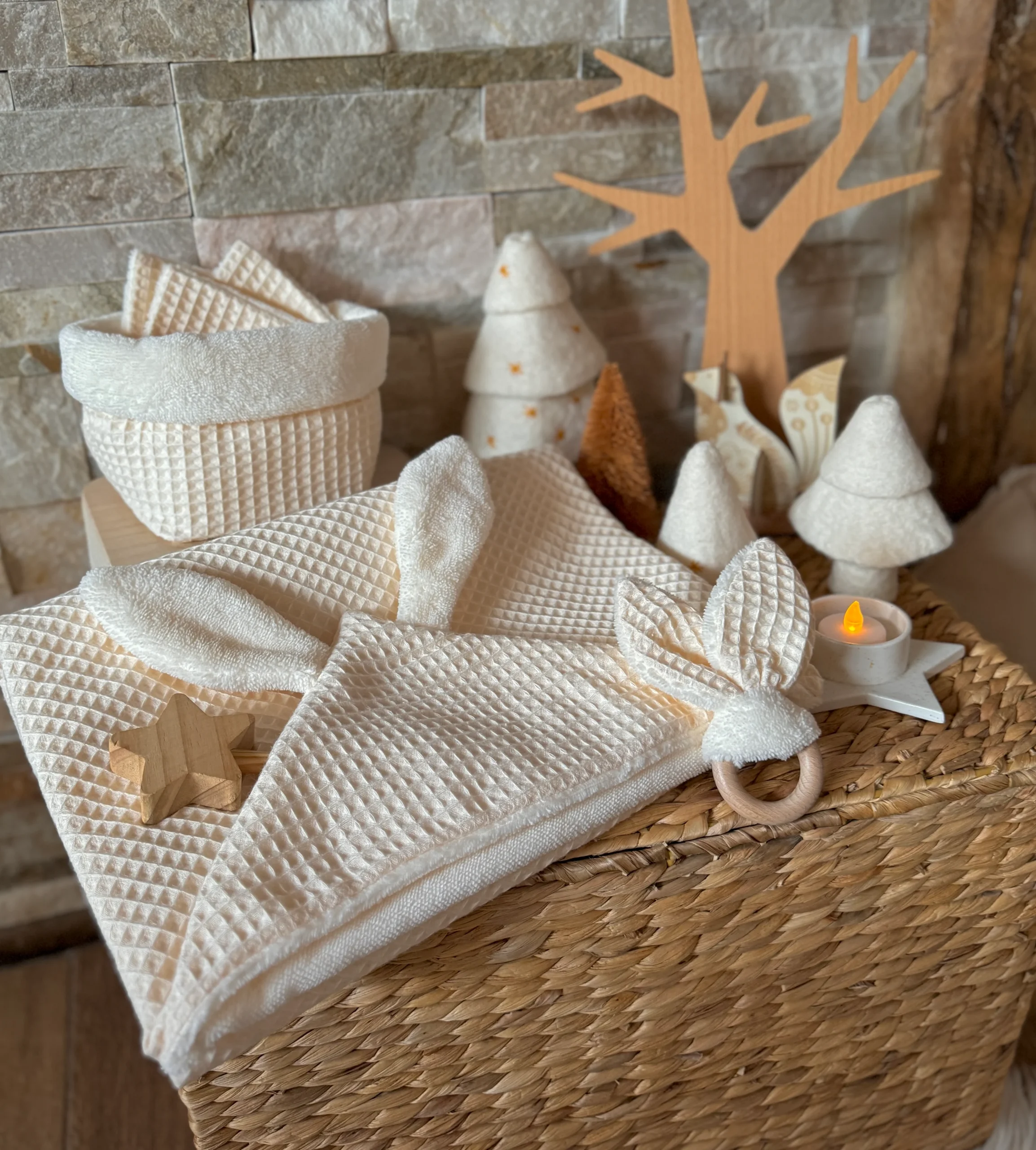 Cape de bain Lapinou / Double Gaze Jacques Ecru-Cassonade