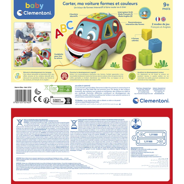 Encouragé par des effets sonores, l’enfant pourra perfectionner ses compétences manuelles avec l’activité de tri. Le coffre de la voiture peut être ouvert pour récupérer les formes.
