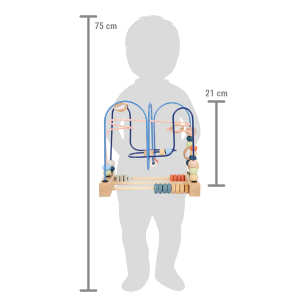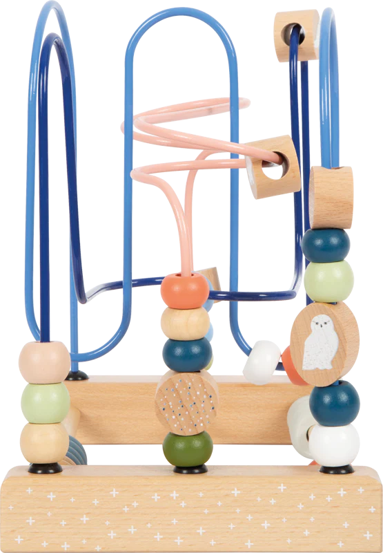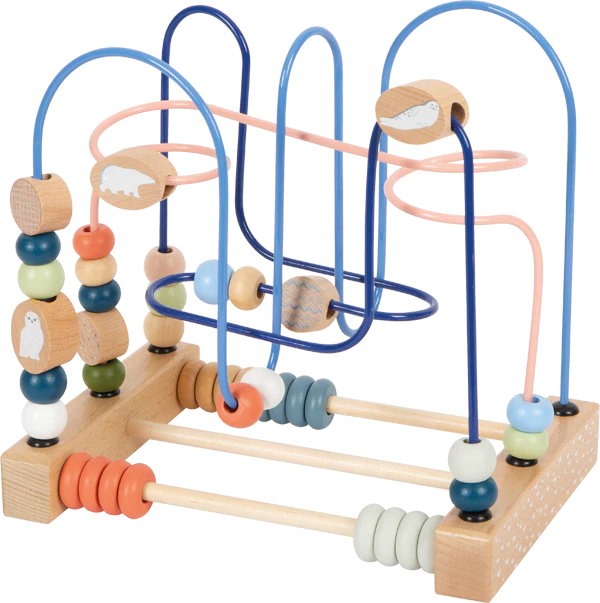 Le plaisir de la motricité dans l’Arctique ! Ce jouet de motricité en bois certifié FSC® 100% offre une occupation de longue durée. Des perles en bois ainsi que trois éléments coulissants imprimés avec un ours polaire, un phoque et un hibou des neiges peuvent être guidés sur les trois boucles métalliques de couleur assortie et entrelacées. En plus de la motricité fine, la coordination œil-main est entraînée de manière ludique. Pour varier les plaisirs, les deux bouliers avec des anneaux alignés incitent à pousser et à compter et complètent parfaitement le plaisir d’apprendre ! Un entraîneur de motricité aux couleurs modernes qui soutient le développement moteur des