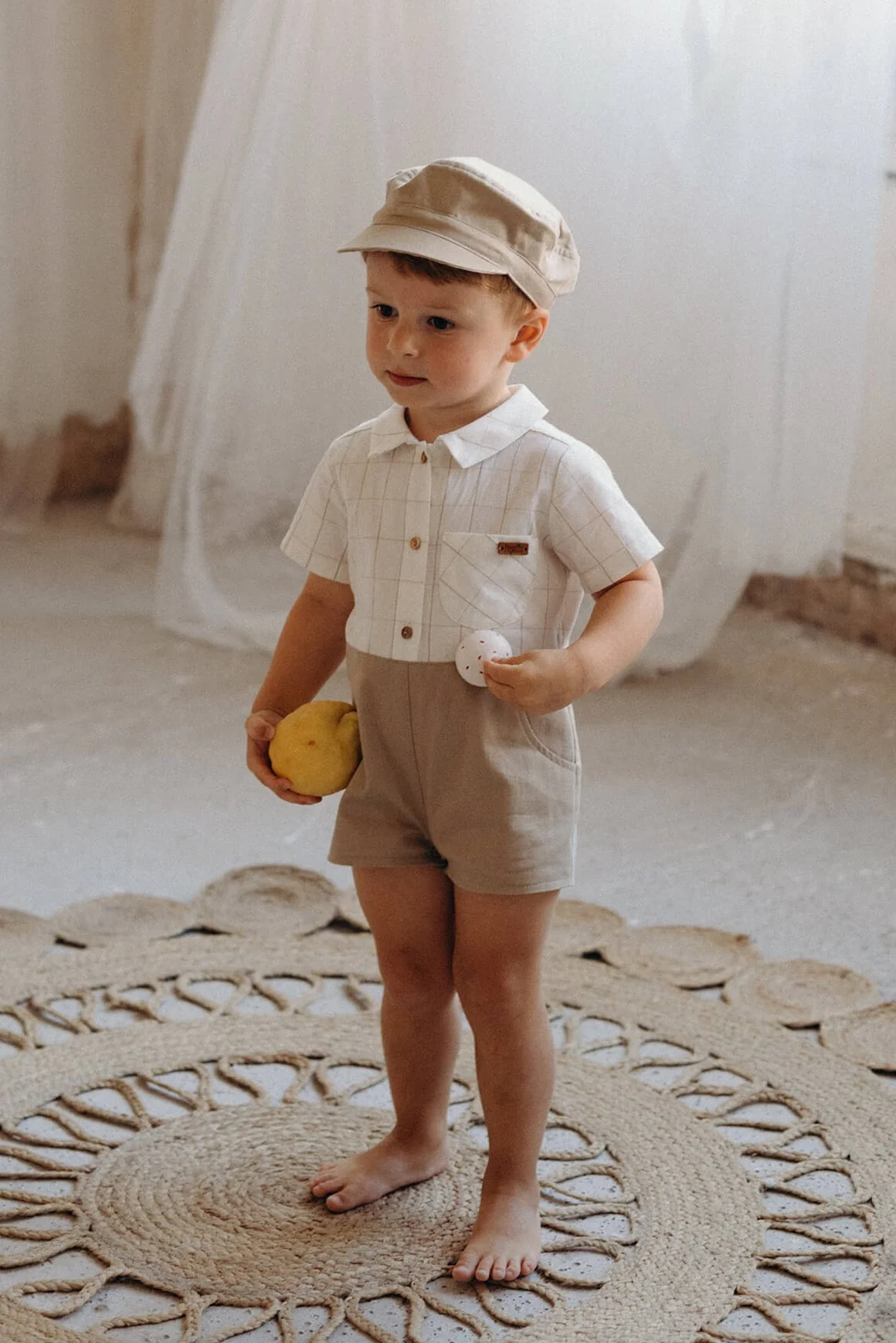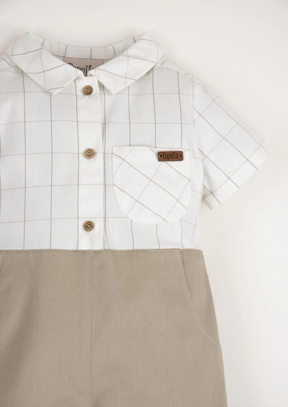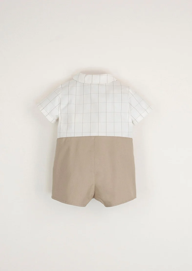 Allier élégance et praticité c’est possible avec la combinaison courte Nils ! Une pièce 2 en 1 en deux tons : haut style chemise avec poche, de fins carreaux et bas avec une coupe short dans un beau beige. Ouverture par boutons en bois sur le devant et au niveau de l’entrejambe.