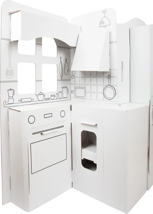Cette grande cuisine de jeu en carton solide offre aux petits chefs de cuisine un espace d’imagination ! Après assemblage, elle peut être conçue individuellement à l’aide de crayons et pinceaux.