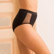Coupe taille haute, coton bio et allure rétro, on est fan de la culotte Onyx ! Deux bandes de tulle à base de polyamide recyclé dévoilent légèrement les hanches et un élastique large ceinture la taille pour une silhouette ultra féminine !