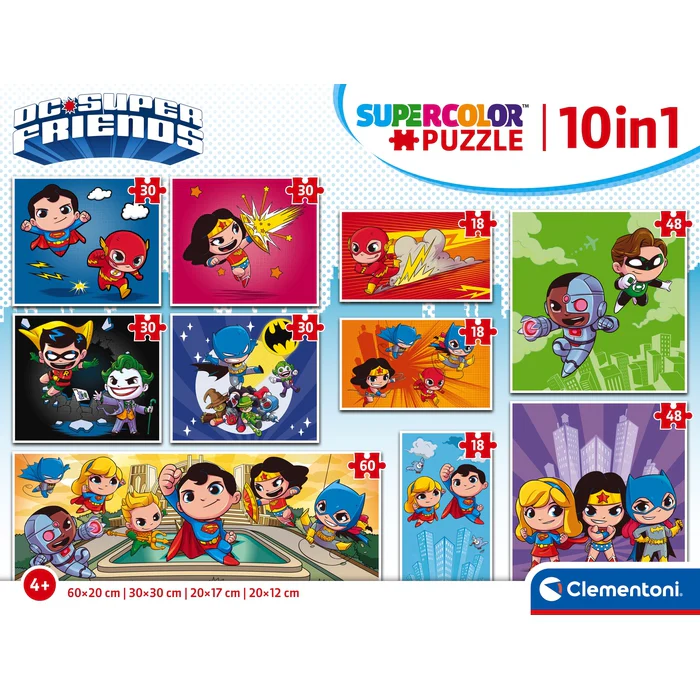 Contient : 3 puzzles de 18 pièces, 4 puzzles de 30 pièces, 2 puzzles de 48 pièces et 1 puzzle de 60 pièces.