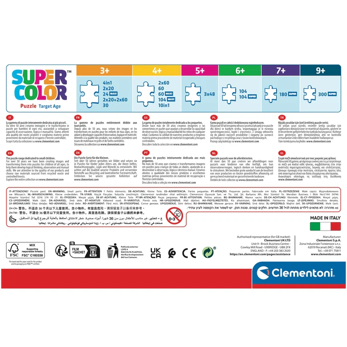 Depuis toujours sensible au problème de l’écologie, Clementoni utilise beaucoup de matériaux recyclés, évitant l’emploi de composants polluants. Made in Italy.