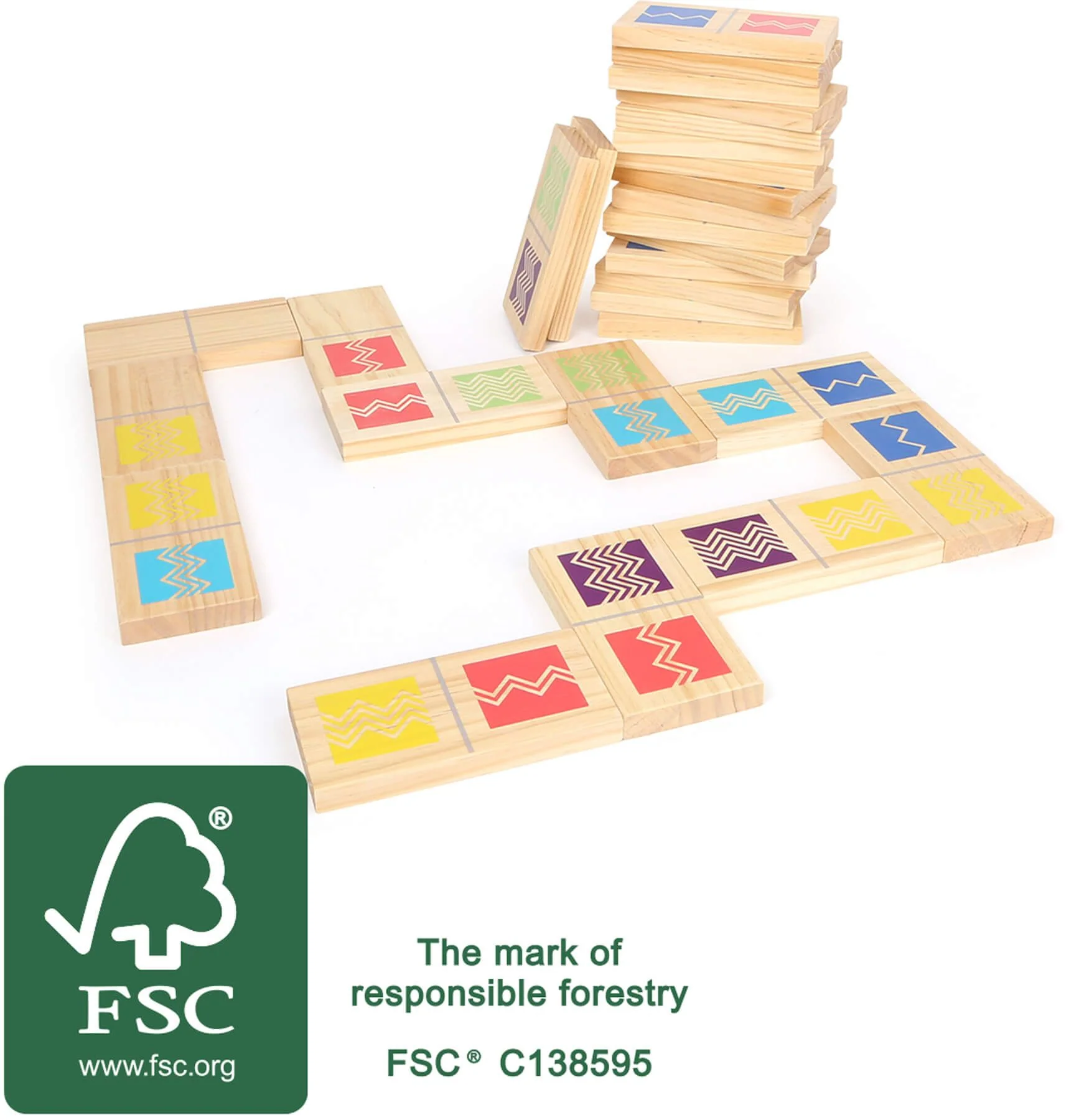 Plaisir de la pose grand format ! Ce domino en bois certifié FSC® 100% est composé de 28 pièces à poser. Dans ce jeu populaire, les joueurs doivent placer les mêmes motifs côte à côte l’un après l’autre. Celui qui arrive en premier à placer sa pile entière sera le gagnant.