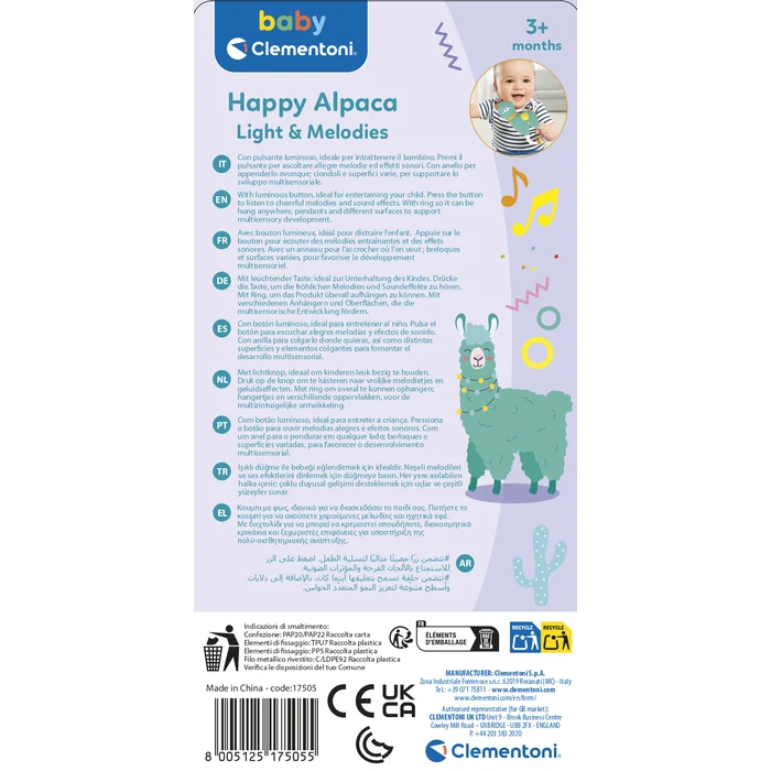 Cet amusant hochet en forme d’alpaga deviendra le jouet préféré de Bébé ! Lorsque le hochet est agité, des mélodies et des effets sonores amusants sont activés, tandis que les breloques colorées attirent l’attention de l’enfant. L’anneau pratique est conçu pour fixer le hochet au berceau ou à la poussette et le transporter facilement. 100% […]