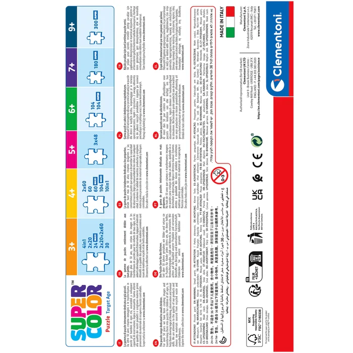 Depuis toujours sensible au problème de l’écologie, Clementoni utilise beaucoup de matériaux recyclés, évitant l’emploi de composants polluants. Made in Italy.