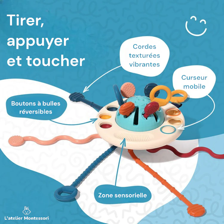 👀 Développe des compétences sensorielles ainsi que la motricité. 👋 Encourage l’exploration tactile. 👶 Parfait pour les enfants dès la naissance. ♻️ Fabriqué en silicone non toxique.