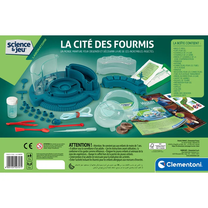 Le coffret contient également tous les instruments nécessaires pour étudier la vie des fourmis dans les meilleures conditions.