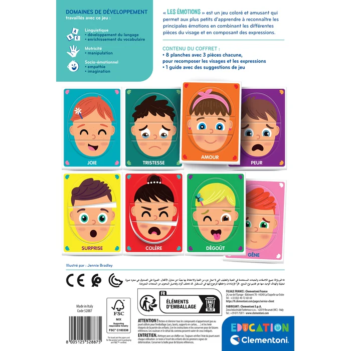 Un jeu pour apprendre à connaître les émotions avec 6 mini-puzzles illustrés à reconstituer. L’enfant recompose les visages exprimant différentes émotions ou combine les pièces entre elles pour créer de nombreux visages amusants. Soutient le développement socio-émotionnel, linguistique et la motricité fine. Découvrez toute la gamme de jeux éducatifs Clementoni conçus pour toutes les étapes […]