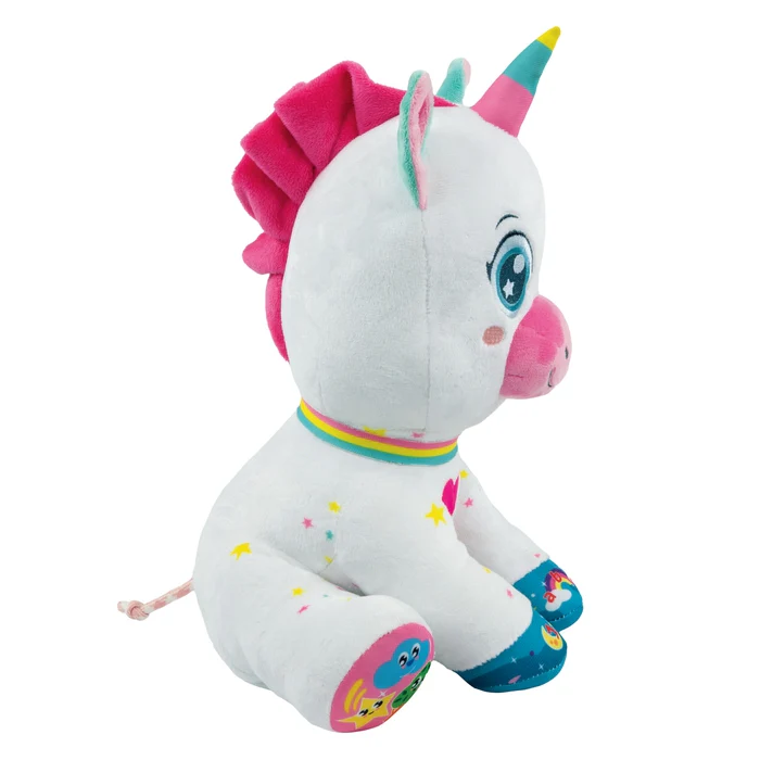 Cette adorable licorne interactive accompagne Bébé dans un monde de jeu tout doux !
