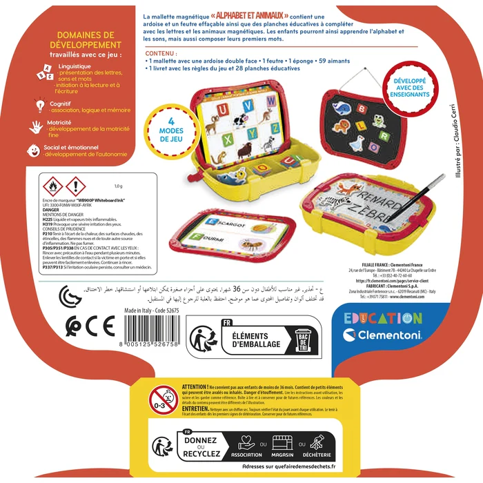 L’enfant pourra s’amuser avec les aimants et consolider sa connaissance des thèmes abordés à l’école maternelle, comme l’alphabet et les animaux.