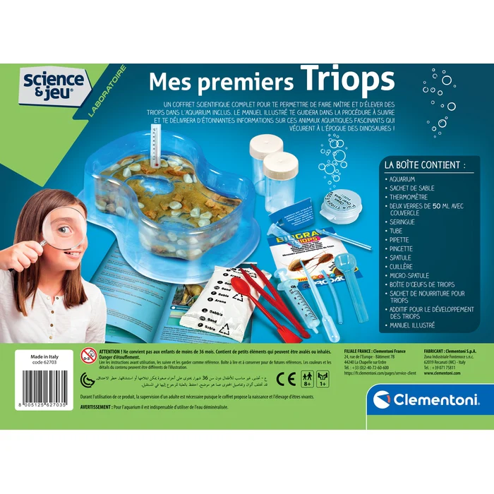 Un coffret avec tout le nécessaire pour donner naissance et faire grandir des Triops, de fantastiques animaux qui ont vécu à l’époque des dinosaures ! Les œufs et la nourriture sont inclus.