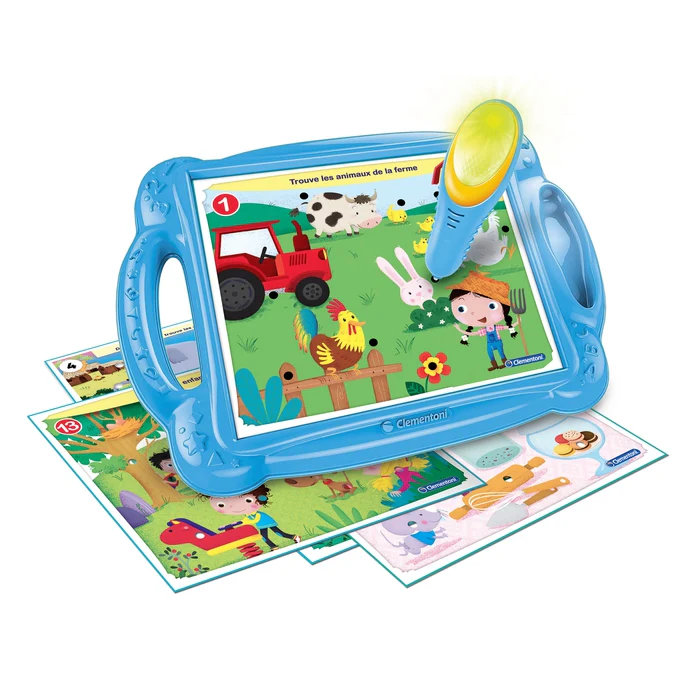 Un coffret amusant contenant un pupitre et des fiches proposant une multitude de quiz auxquels répondre à l’aide du stylo, spécialement pensé pour les plus petits.