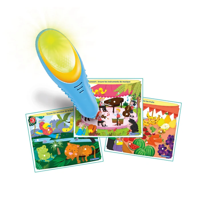 Le stylo ergonomique et interactif permet de vérifier les réponses de l’enfant à travers des effets sonores et lumineux.