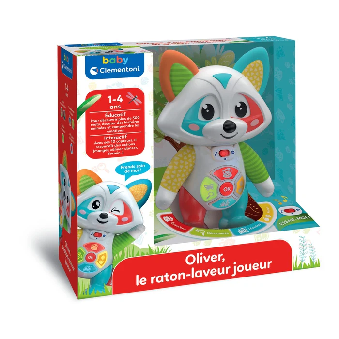 Oliver est un raton-laveur interactif qui accompagnera les tout-petits dans leur croissance à tout moment de la journée.