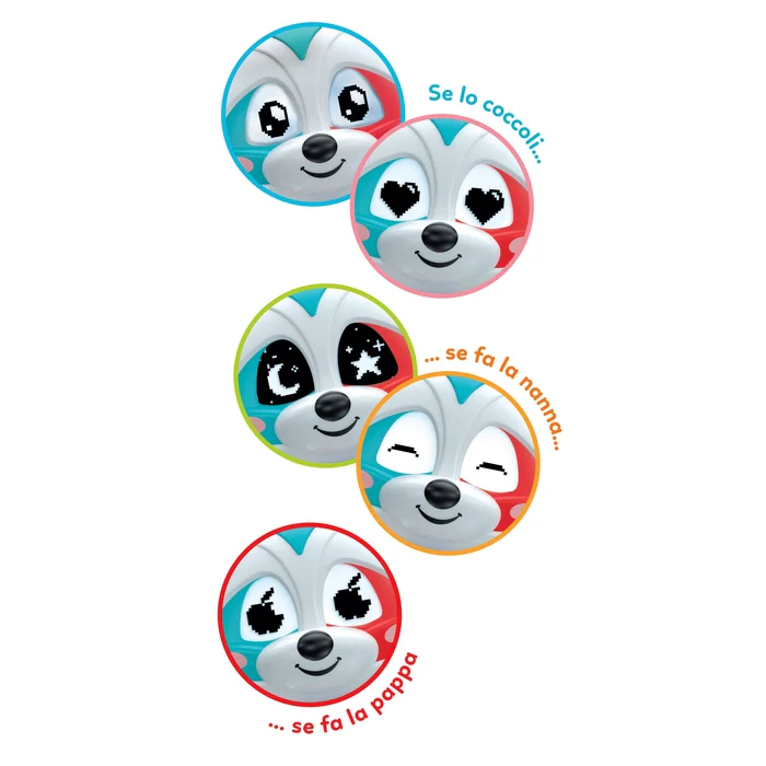 Plusieurs modes de jeu sont disponibles grâce aux 4 boutons sur le ventre d’Oliver : Émotions, Repas, Histoire et Exploration.
