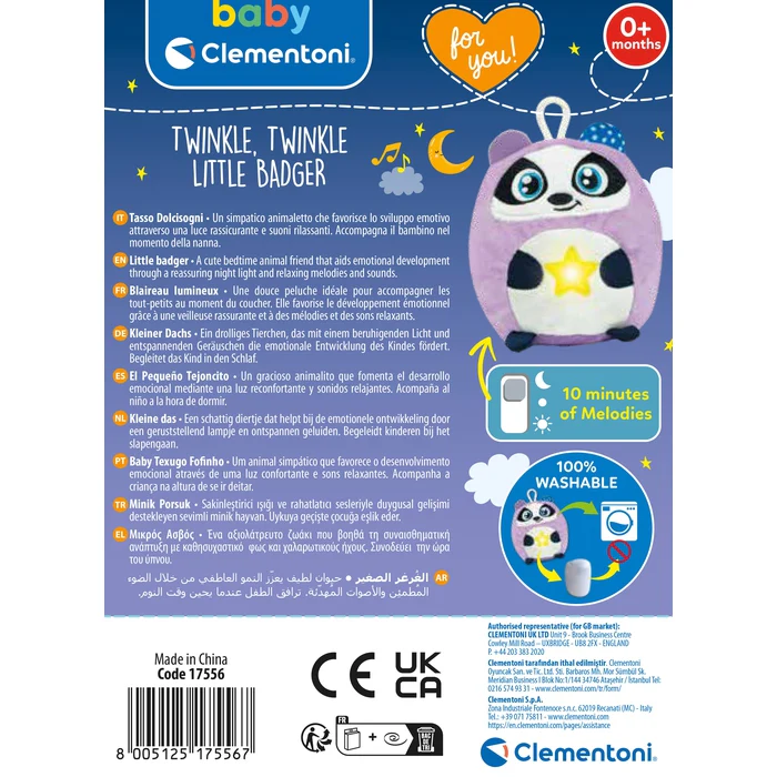 Ce petit blaireau tout doux est à la fois une veilleuse et une peluche qui aide l’enfant à se détendre et à s’endormir calmement.