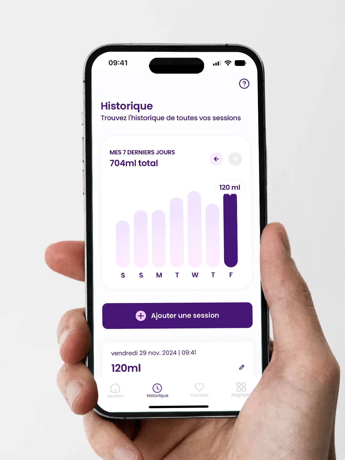 💆 Facilitez votre utilisation en suivant le niveau de lait et en pilotant le tire-lait depuis l’app sans vous déshabiller