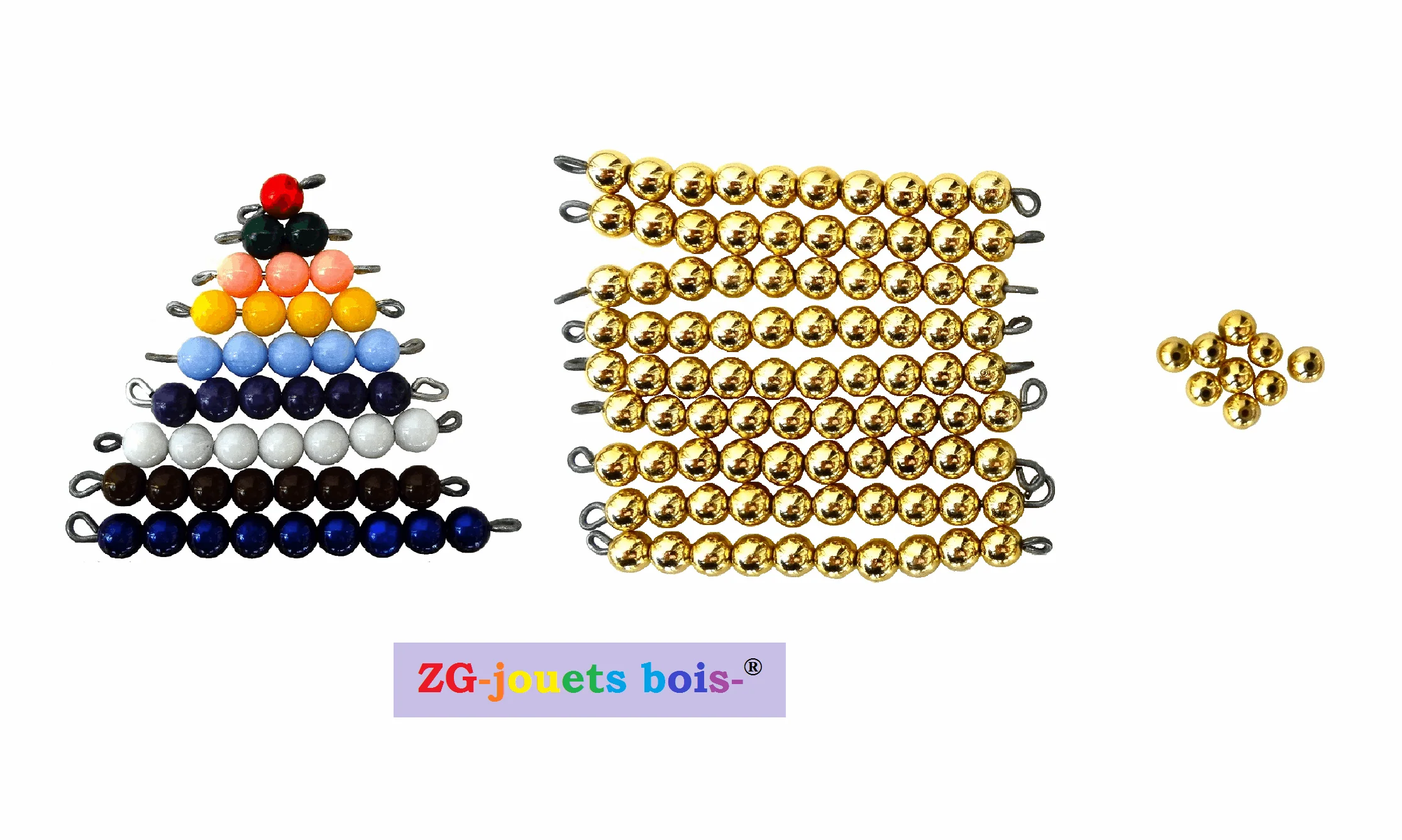 Perles (lot complet) Table Seguin 1&2 Montessori, 10 doré ou orange