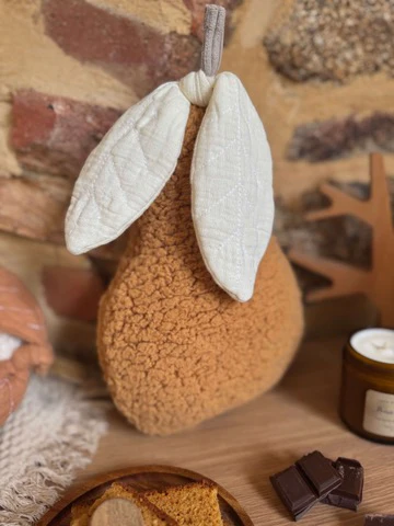 Poire décorative – Coussin Décoratif / Sherpa Camel – Double Gaze Ecru