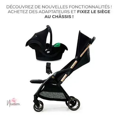La poussette Apino TravelFlex peut également être équipée d’adaptateurs universels (vendus séparément) pour y fixer un siège auto compatible, créant ainsi un véritable système de voyage. Vous pourrez ainsi transférer facilement votre enfant de la voiture à la poussette sans le réveiller, en un seul clic. Les adaptateurs seront disponibles à partir de juin 2024.