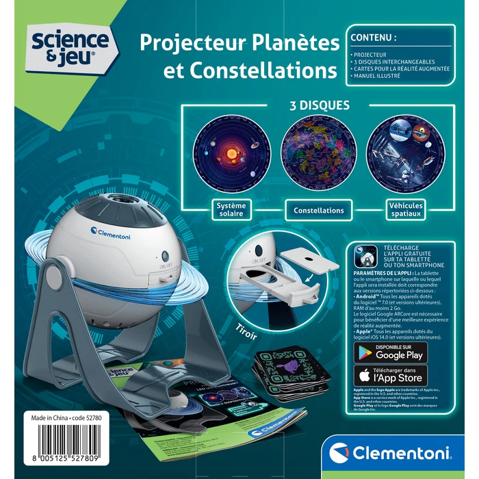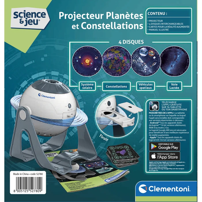 Un projecteur HD pour apprendre à connaître le Système Solaire, les constellations, la Voie Lactée et les engins spatiaux. Insère l’un des 4 disques et observe l’image se projeter. Tu peux régler l’inclinaison du projecteur pour une observation confortable. Le jeu contient aussi des cartes avec un QR code spécial à scanner avec l’application dédiée […]
