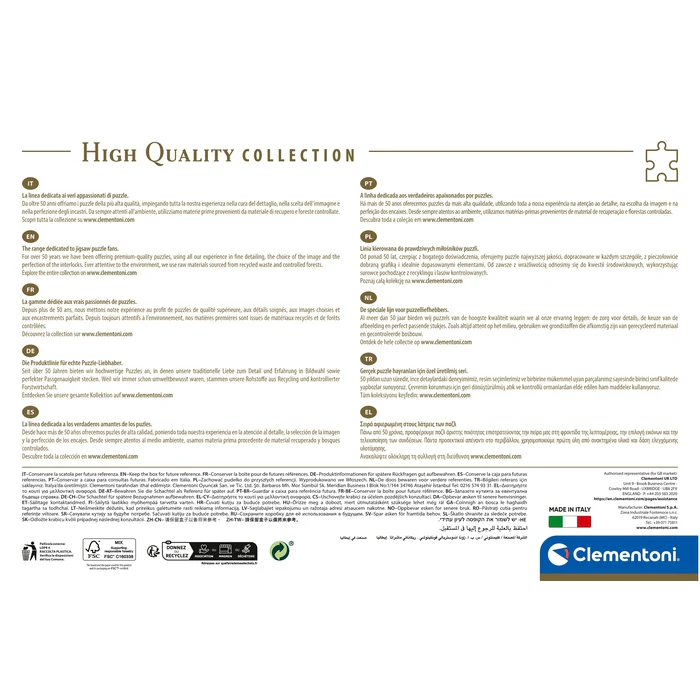Les images les plus attrayantes, une grande variété de formats et une qualité signée Clementoni pour une gamme qui est devenue une référence pour les férus de puzzles du monde entier.