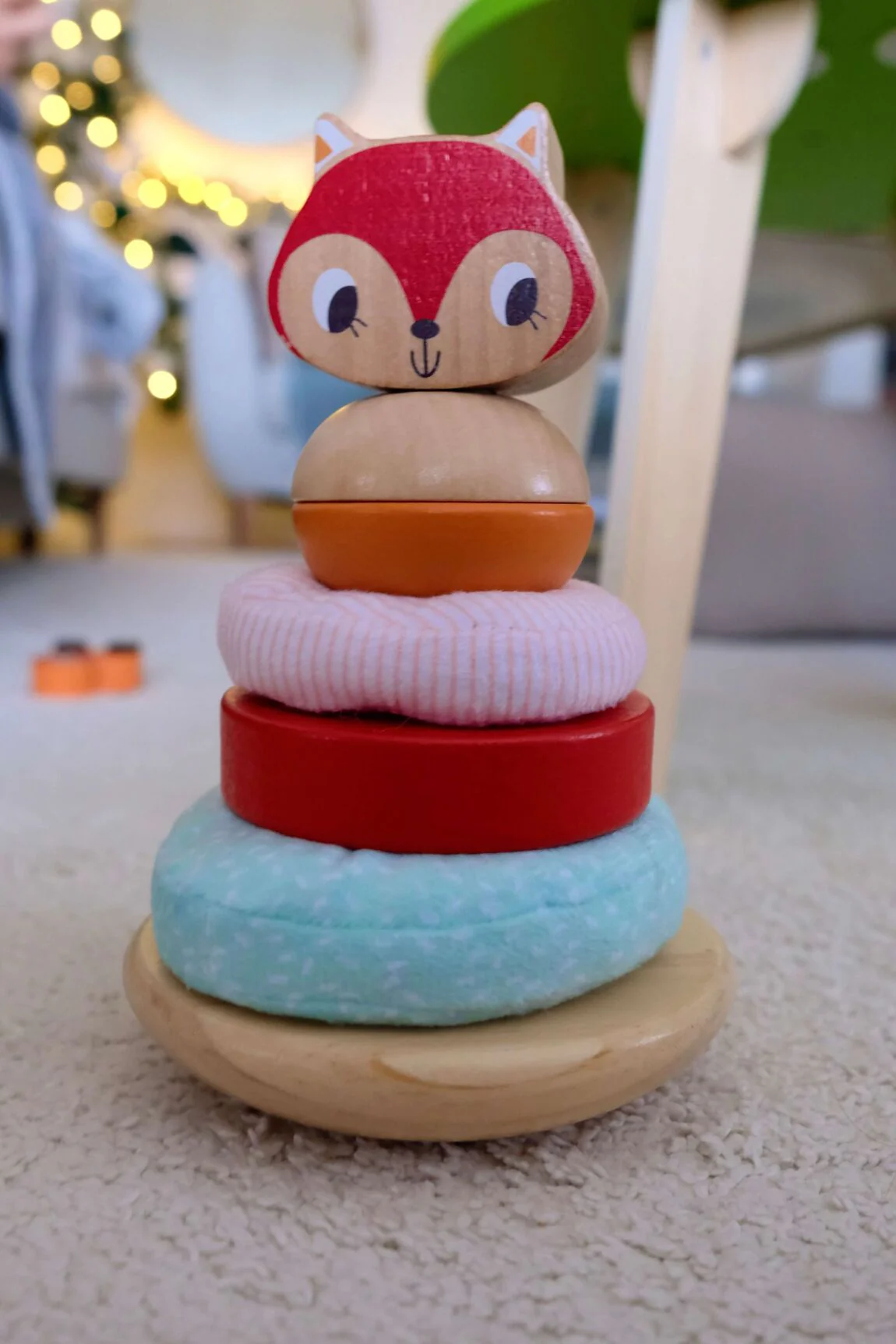 Un jouet traditionnel au design moderne. Le jouet en bois est composé d’un poteau en bois massif et de quatre disques ronds que votre enfant pourra enfiler sur le poteau central. Ce faisant, il explorera différents matériaux, couleurs et créera de nouvelles combinaisons. Un jouet éducatif en bois de qualité et aux couleurs non toxiques avec un design de renard.