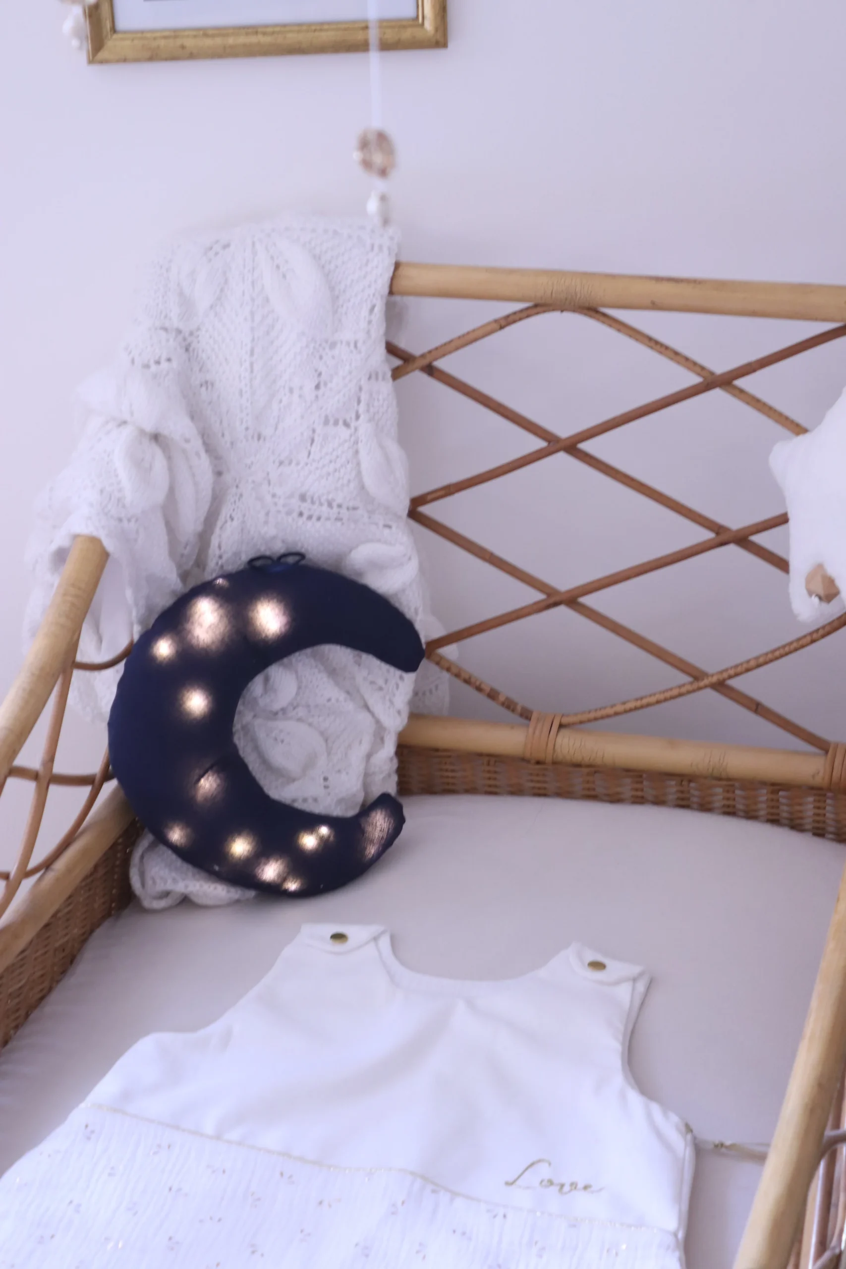 Veilleuse Lune ! Les veilleuses sont des objets de décoration à suspendre ou à poser dans la chambre de vos flocons . Elles fonctionnent avec 2 piles lr4 fournies ce qui leurs permet d’être baladées un peu partout en voyage ou dans la maison ! Sa lumière douce apaise les frayeurs nocturnes sans empêcher le […]