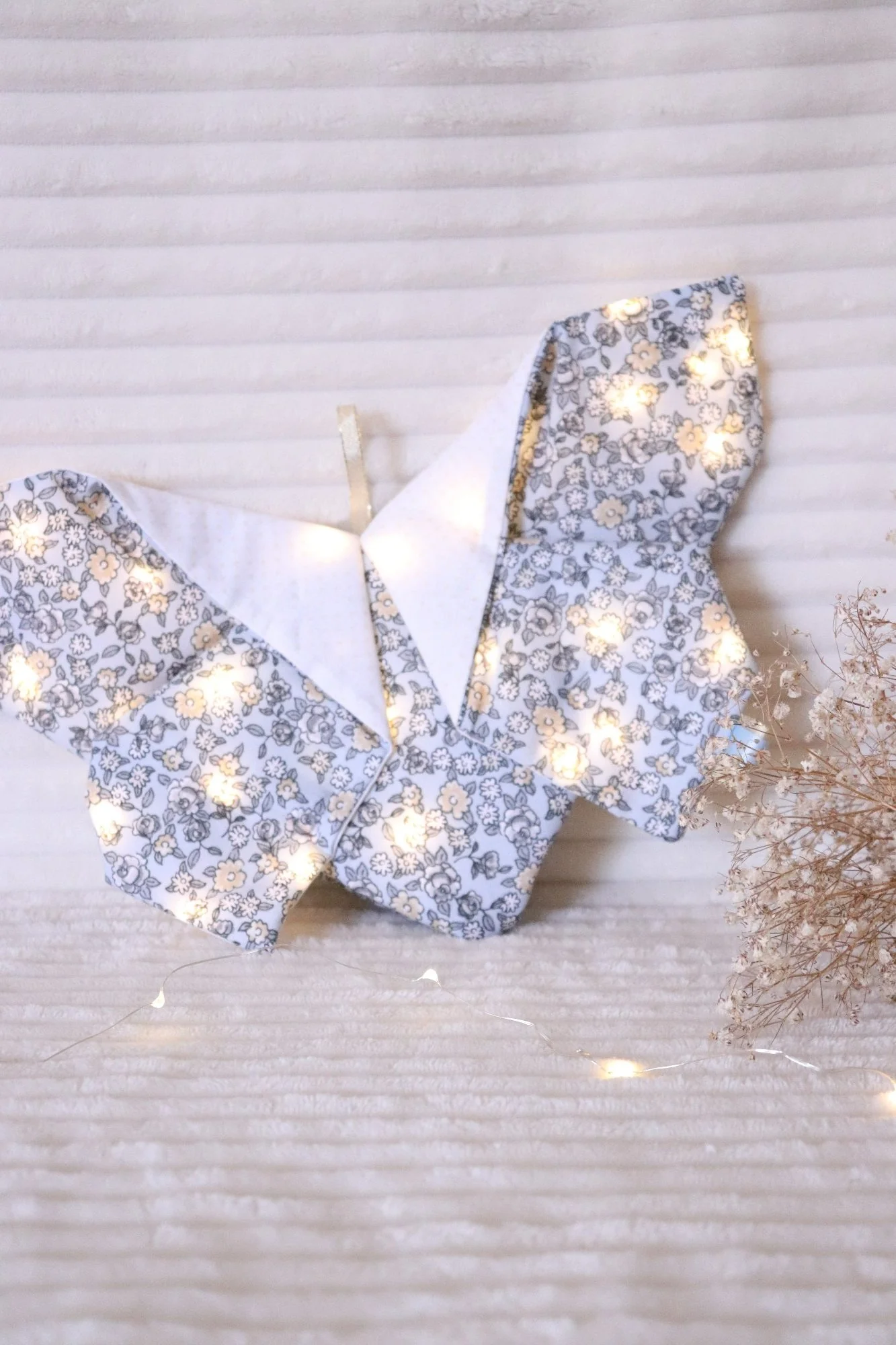 Veilleuse papillon origami ! Les veilleuses sont des objets de décoration à suspendre ou à poser dans la chambre de vos flocons . Elles fonctionnent avec 2 ou 3 piles ( selon modèle ) lr4 fournies ce qui leurs permet d’être baladées un peu partout en voyage ou dans la maison ! Sa lumière douce […]