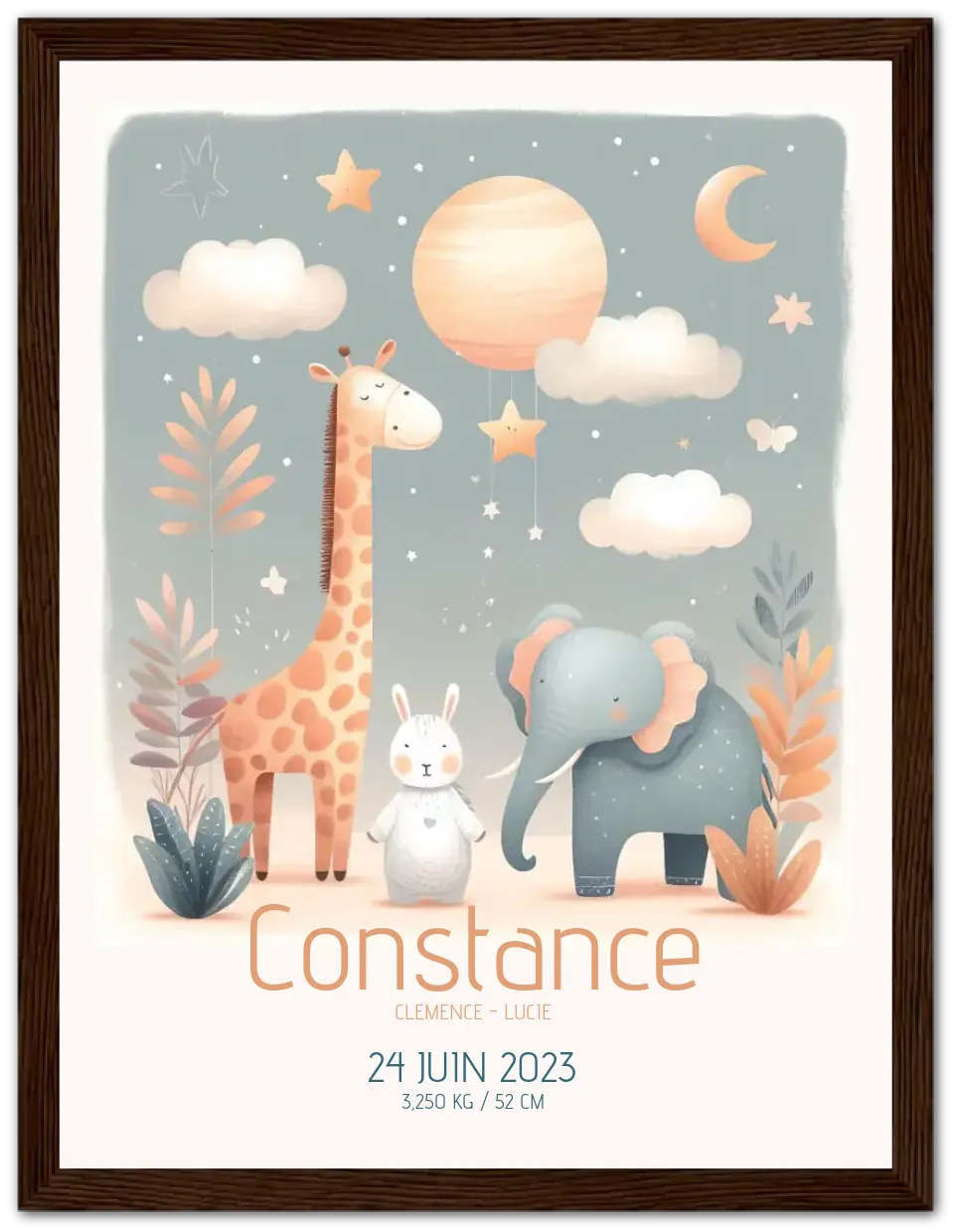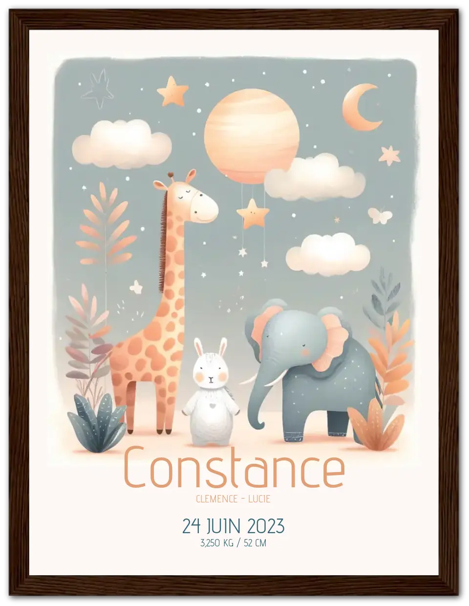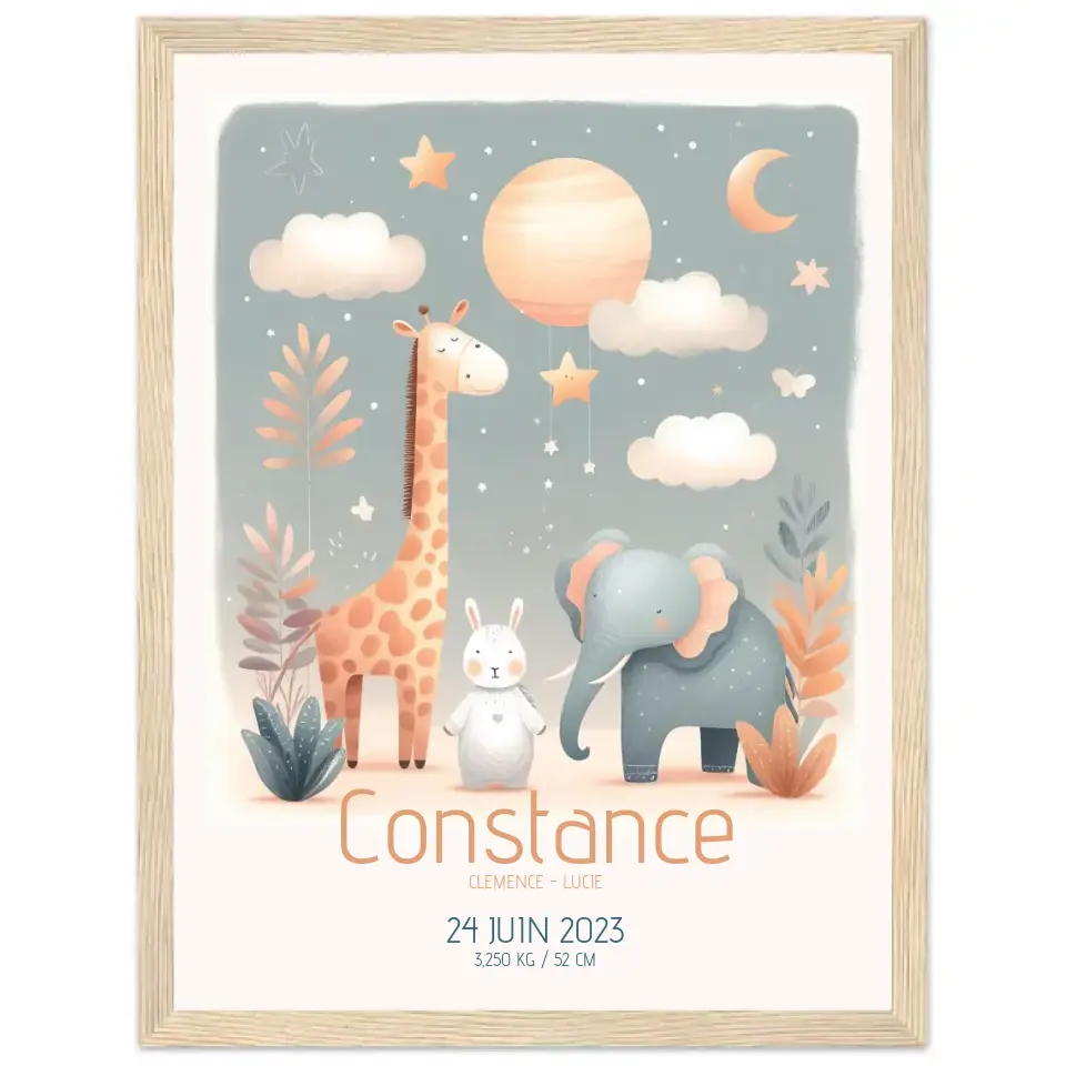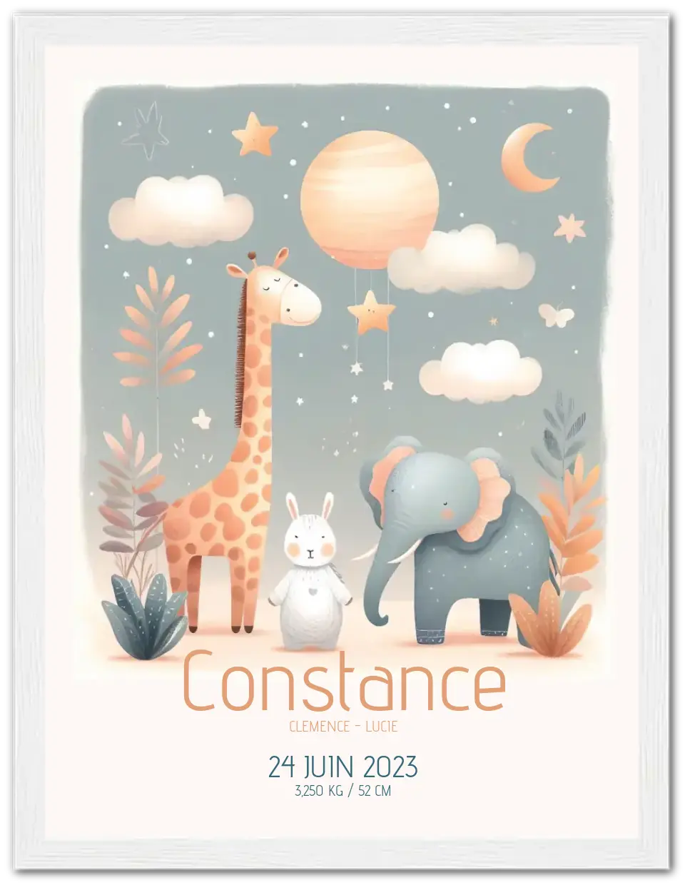 Plongez dans un monde de douceur et de rêve avec notre cadre en bois « Safari Céleste ».