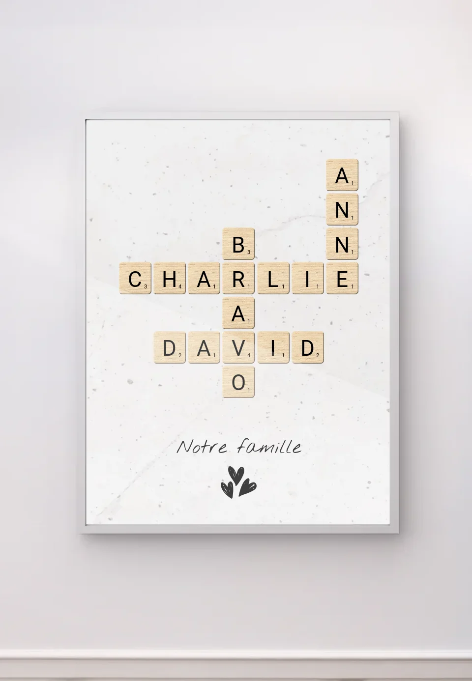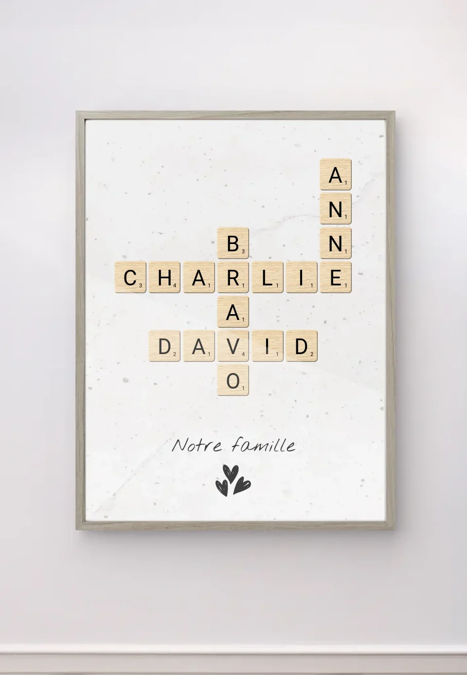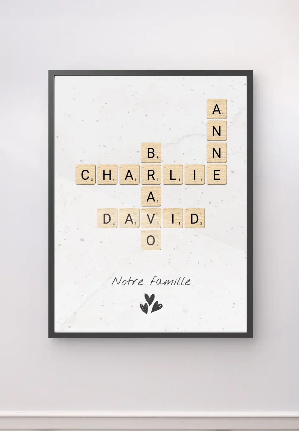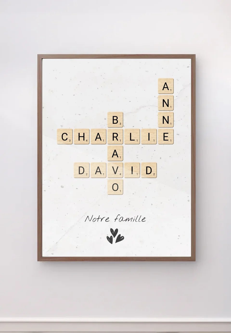 Créez une décoration unique et mémorable avec notre affiche encadrée personnalisable inspirée du célèbre jeu Scrabble !