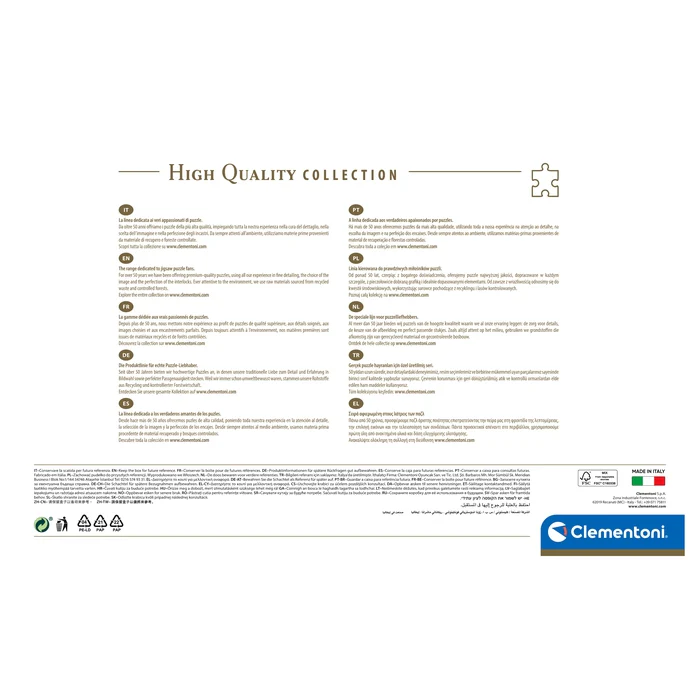 Les images les plus attrayantes, une grande variété de formats et une qualité signée Clementoni pour une gamme qui est devenue une référence pour les férus de puzzles du monde entier.