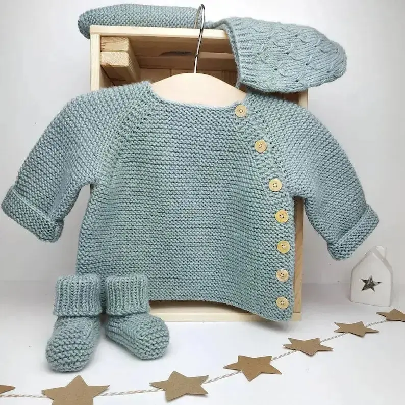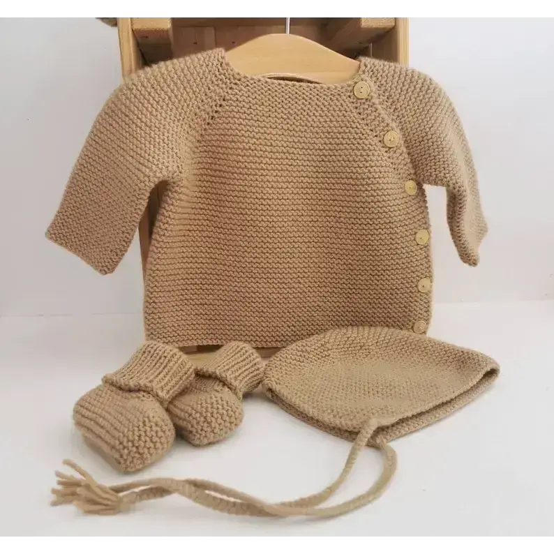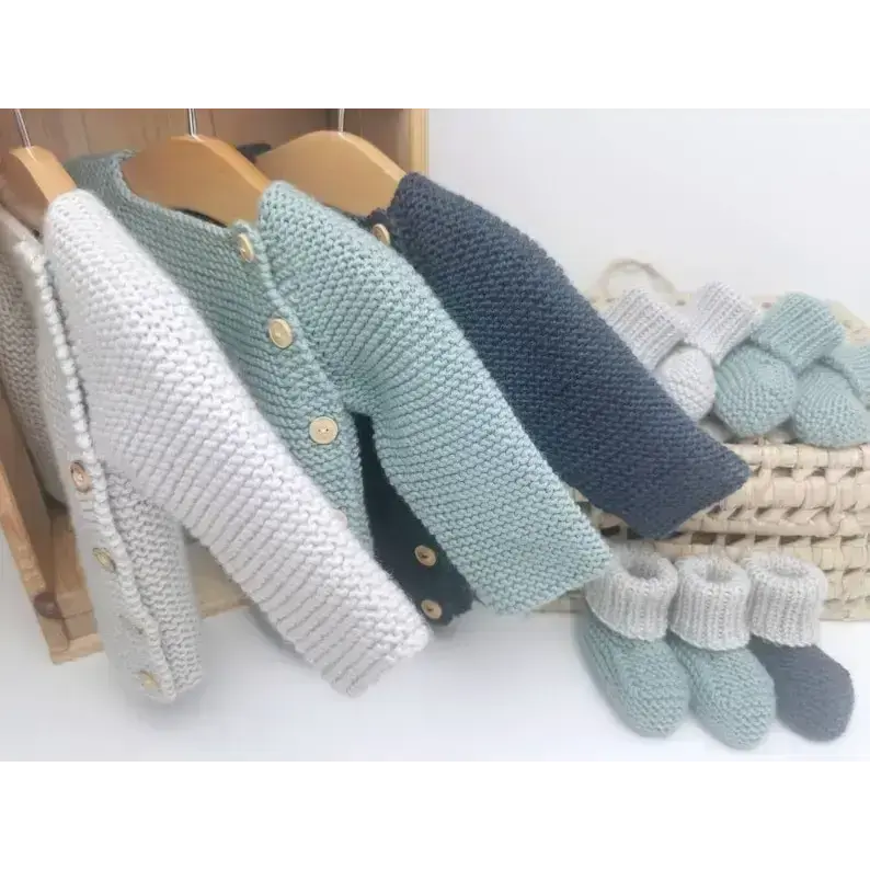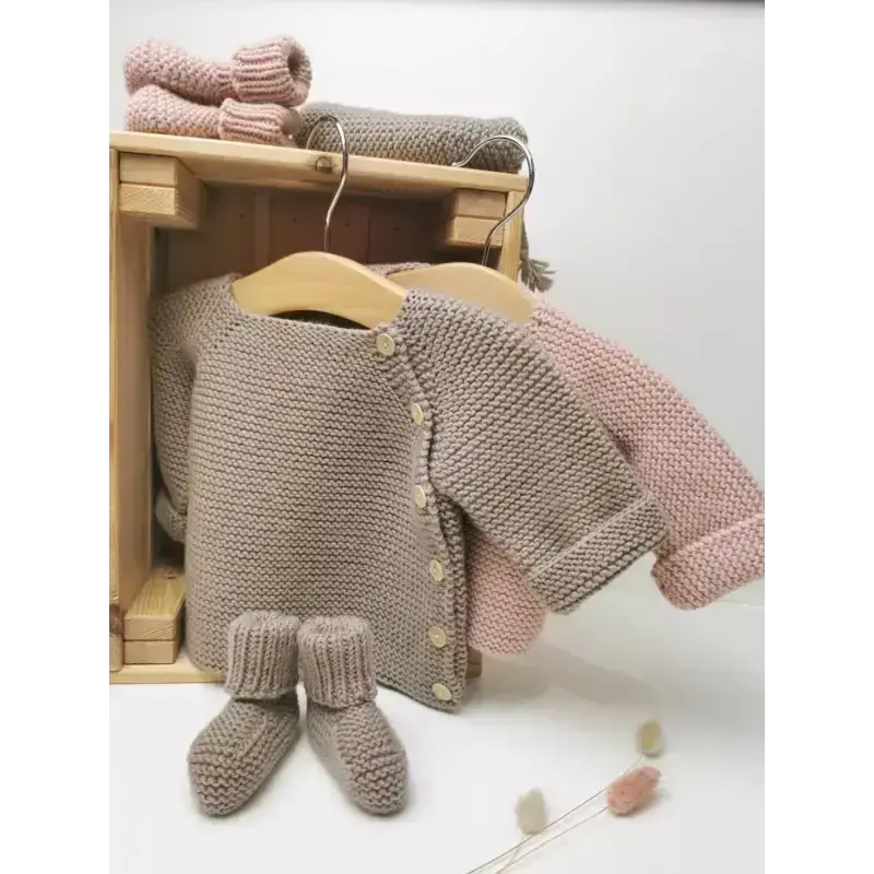 La brassière bébé AUGUSTE peut être associée avec les chaussons PAUL ou le béguin JOSEPH pour un ensemble harmonieux. Ces accessoires, également disponibles en boutique, complètent à merveille la brassière tricotée pour offrir à votre bébé un look à la fois confortable et stylé. Pour les bébés d’été, découvrez la version en coton organique de la brassière AUGUSTE.