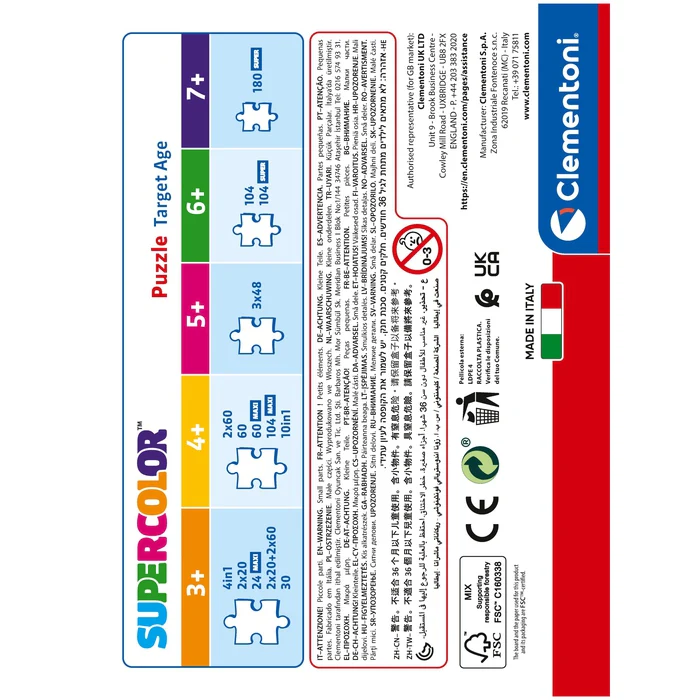 Depuis toujours sensible au problème de l’écologie, Clementoni utilise beaucoup de matériaux recyclés, évitant l’emploi de composants polluants. Made in Italy.