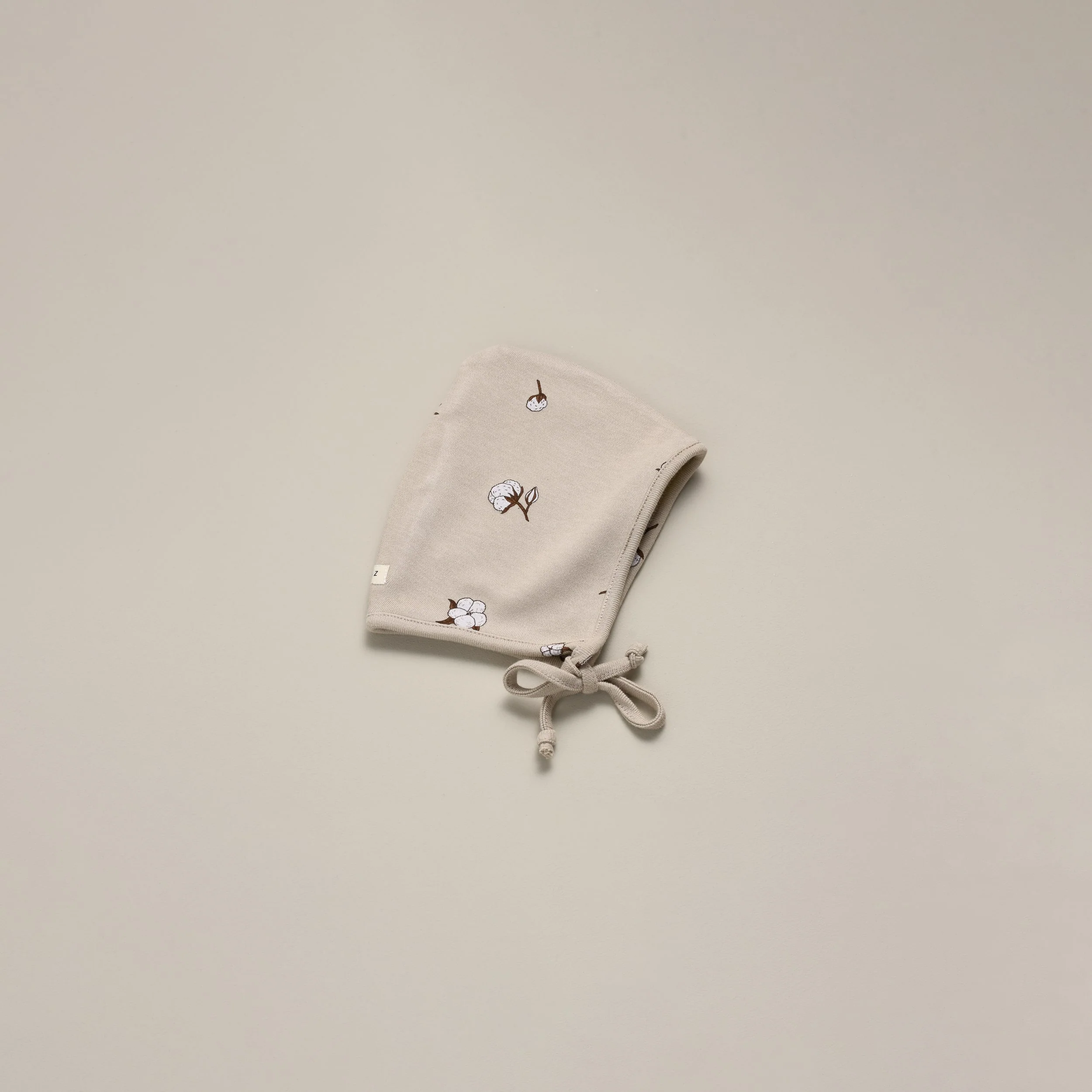 Joli béguin mixte beige tout doux en coton bio avec un motif de fleurs de coton. L’accessoire utile qui maintient au chaud, protège et au passage finit un look 😉 Bébé sera sans aucun doute à croquer vous verrez !