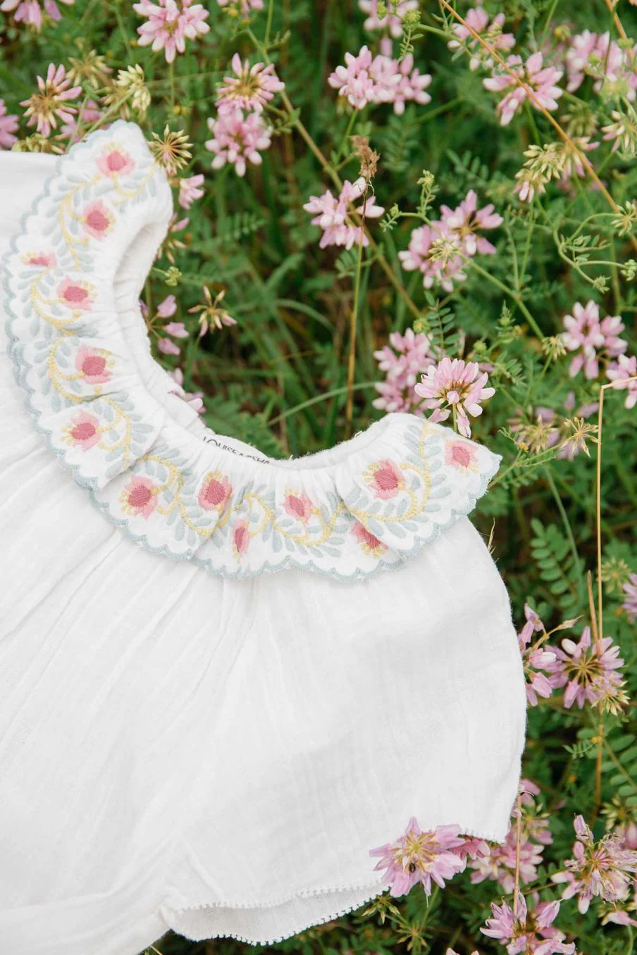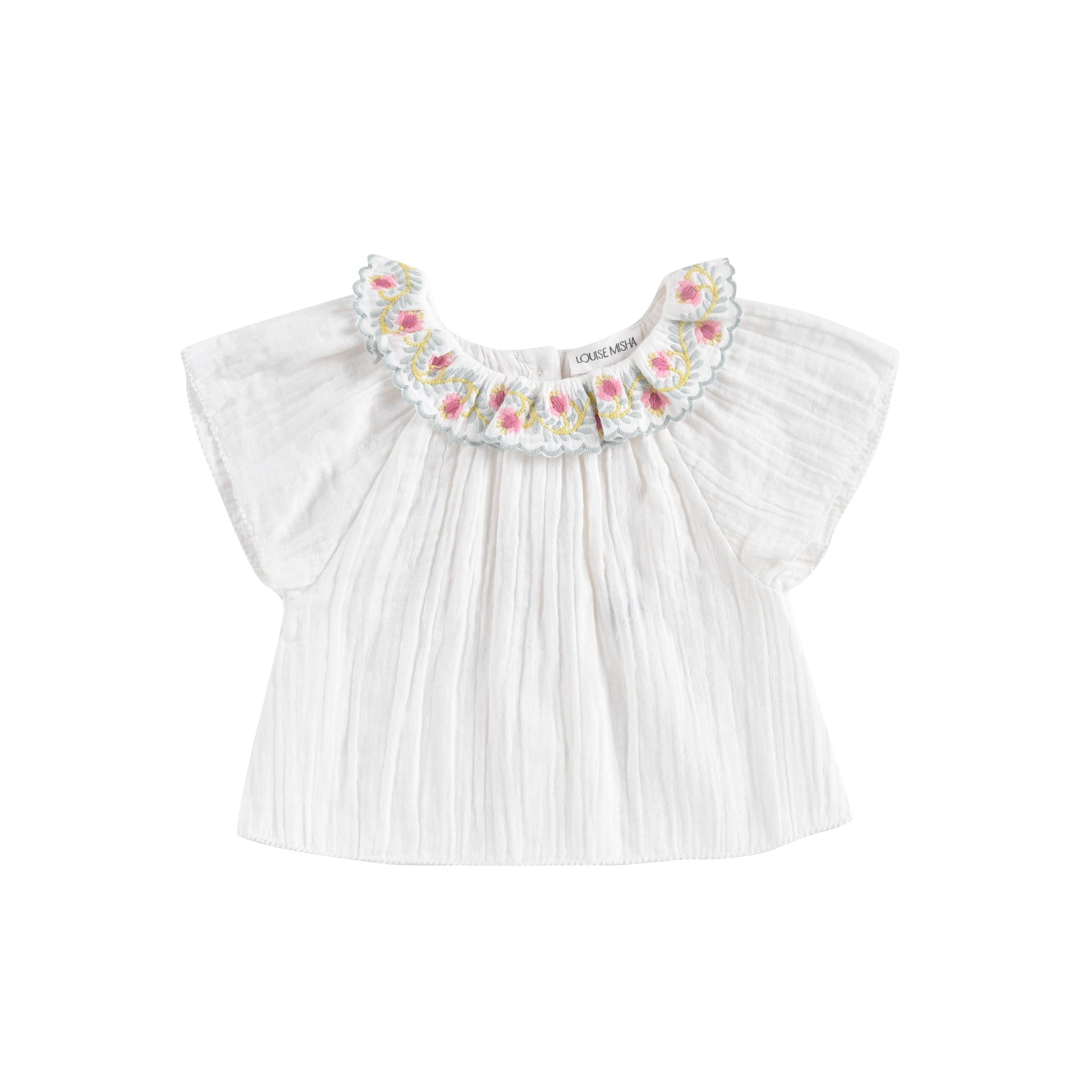 En double gaze de coton, cette blouse est d’une douceur et d’un confort ! Rehaussé de broderies fleuries délicatement colorées, son col pierrot est ravissant. Peut compléter n’importe quelle tenue.