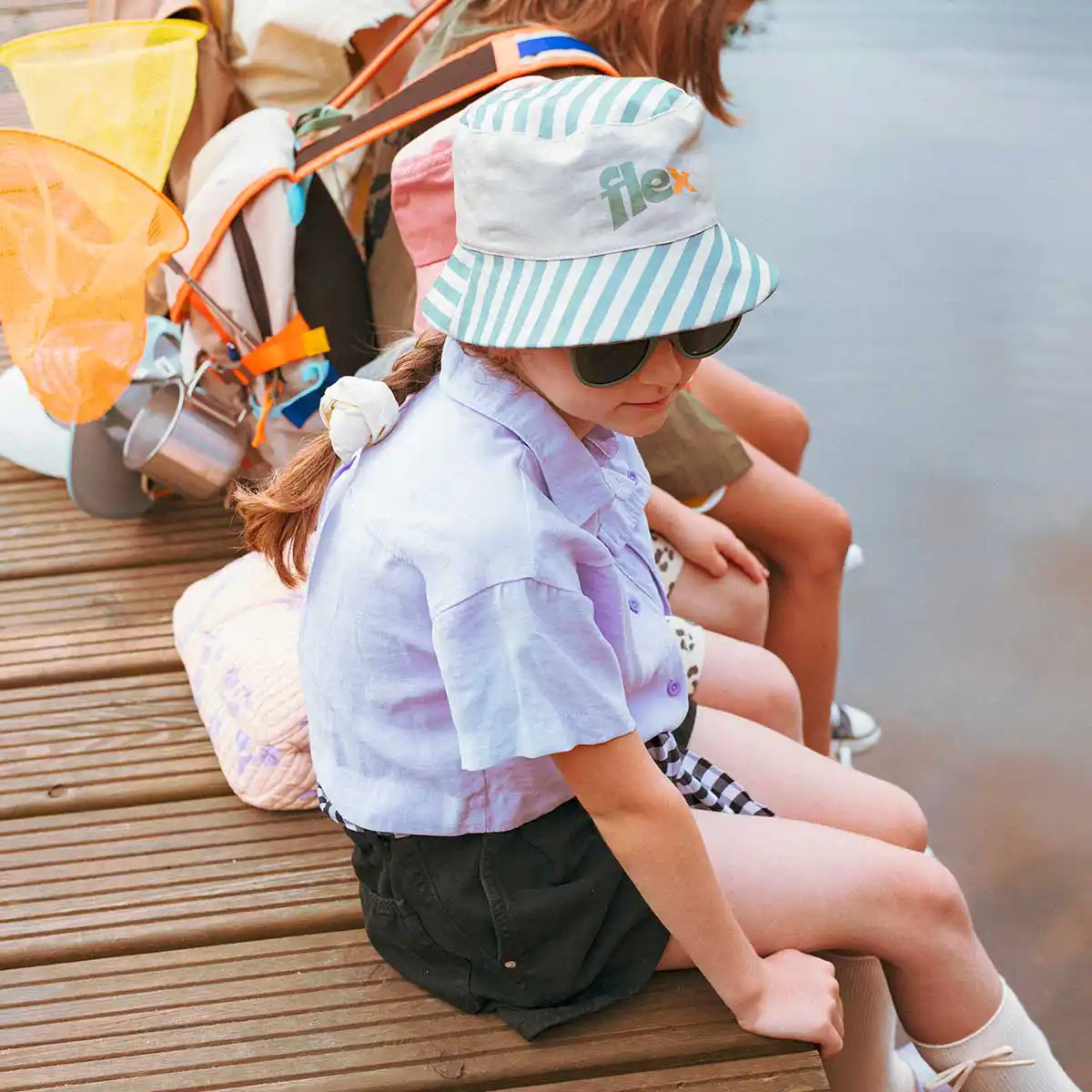 Le Bob réversible pour enfants et bébés est l’indispensable pour protéger bébé au soleil. Un côté unicolore vert sauge (avec un x rose), et un côté imprimé à rayures vertes avec sa broderie « Flex » pour apporter du style à votre petit enfant.