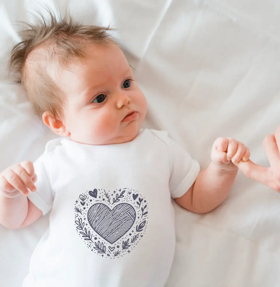 Habillez votre petit trésor avec le body bébé « Coeur », conçu pour offrir confort et style.
