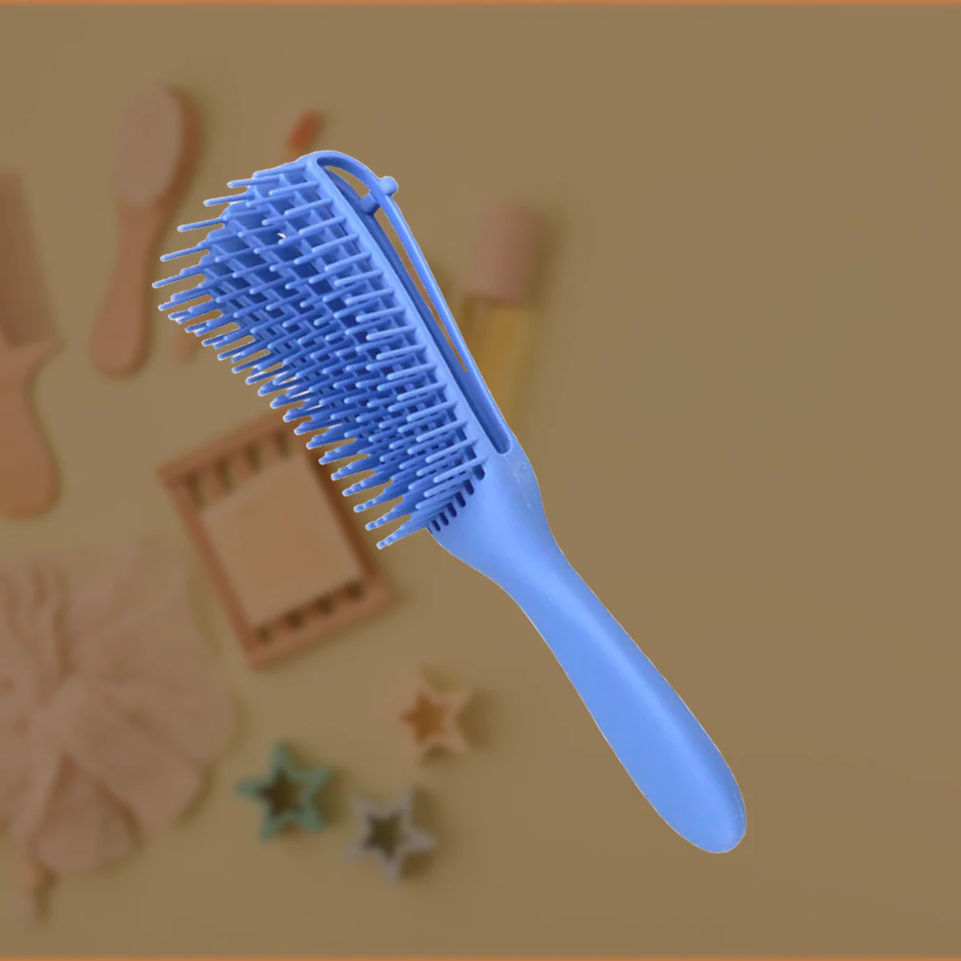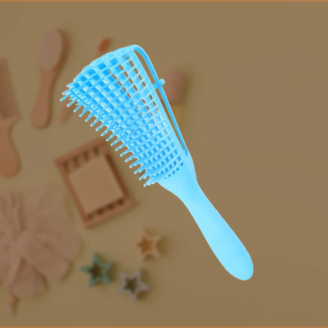 Alors, comment bien utiliser notre brosse démêlante ? C’est simple ! Mouillez vos cheveux avec de l’eau ou un soin revitalisant, puis séparez-les manuellement et commencez à démêler en montant progressivement des extrémités vers les racines. Laissez les picots de la brosse glisser doucement sur vos boucles pour les démêler en douceur et sans douleur. Brossez verticalement pour masser le cuir chevelu, atteindre les racines et ensuite horizontalement pour démêler facilement.