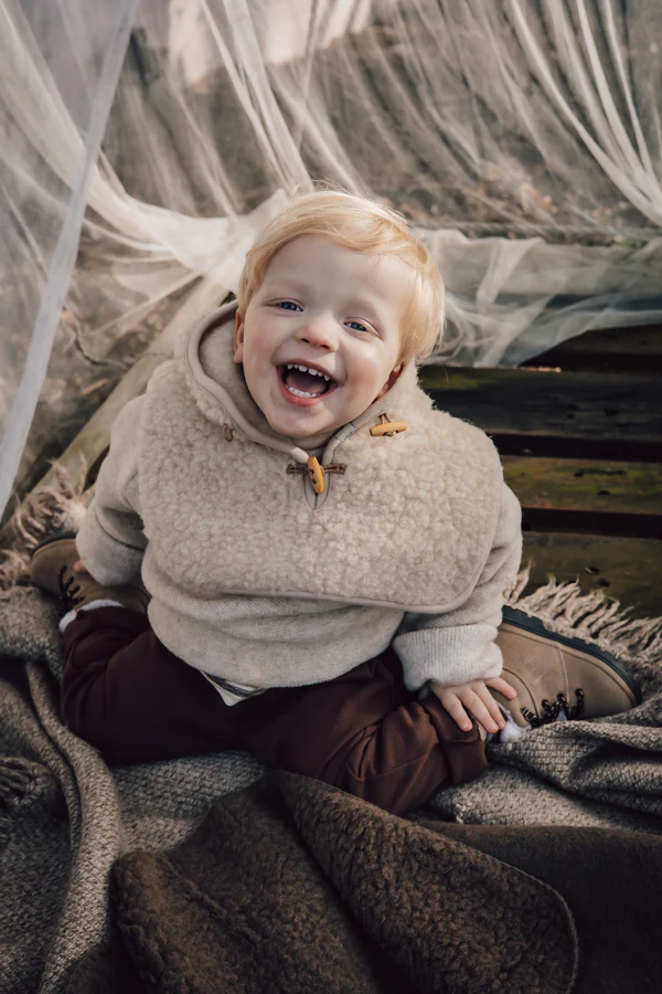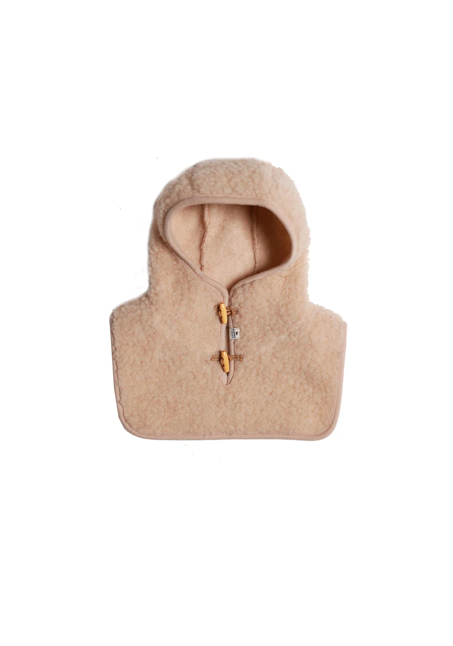 Belle capuche beige pour enfant avec un tour de cou boutonné tout en élégance. Une solution enveloppante 2 en 1 pour tenir chaud à la tête et au cou en même temps. La cagoule Balaclava est fabriquée à 100% de laine mérinos, sans aucune fibre synthétique. Une belle laine de qualité dans laquelle votre enfant restera merveilleusement au chaud. Il faut savoir que la laine est une matière naturelle idéale pour maintenir à la bonne température du corps. Bien que tenant chaud elle respire donc évite les fortes transpirations. A combiner si vous le souhaitez avec nos moufles Gully.